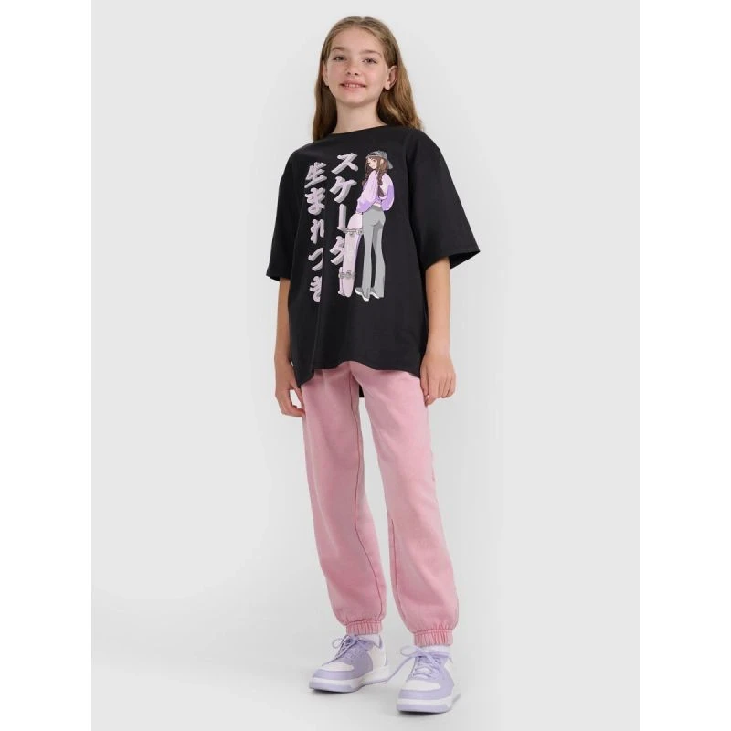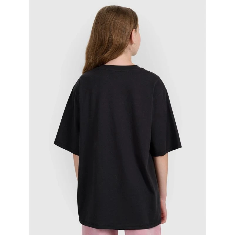 Dívčí tričko 4F je dokonalou kombinací pohodlí a moderního stylu, je vyrobeno ze 100% měkké, na dotek příjemné bavlny pro celodenní pohodlí, má volný oversize střih pro naprostou volnost pohybu a trendy městský vzhled.