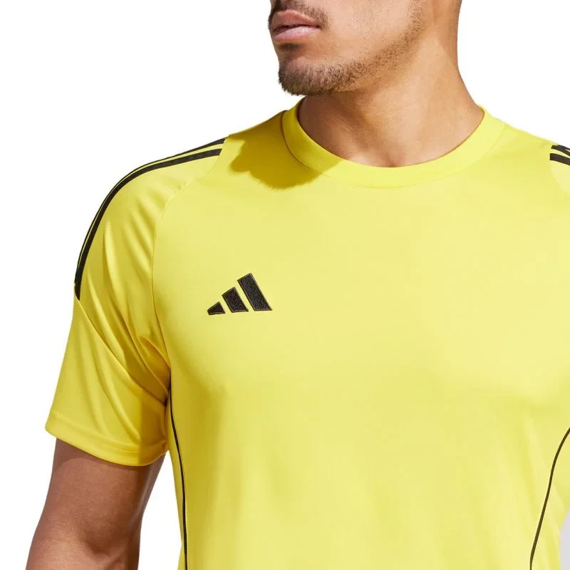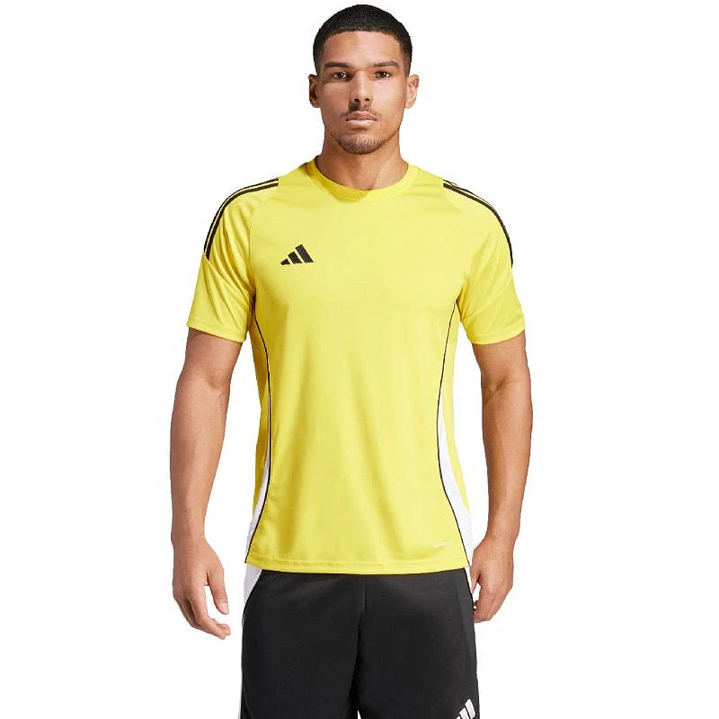 Pánské tričko adidas Tiro 24 Jersey žluté IS1015 Pánské tričko adidas se vám bude hodit při tréninku. Přizpůsobený střih. Technologie Aeroready odvádí přebytečnou vlhkost. Polyesterová vlákna vznikla recyklací. materiál: 100% recyklovaný polyester