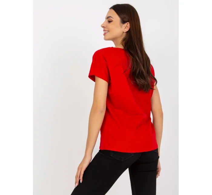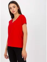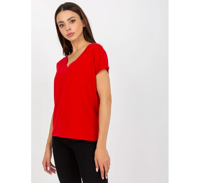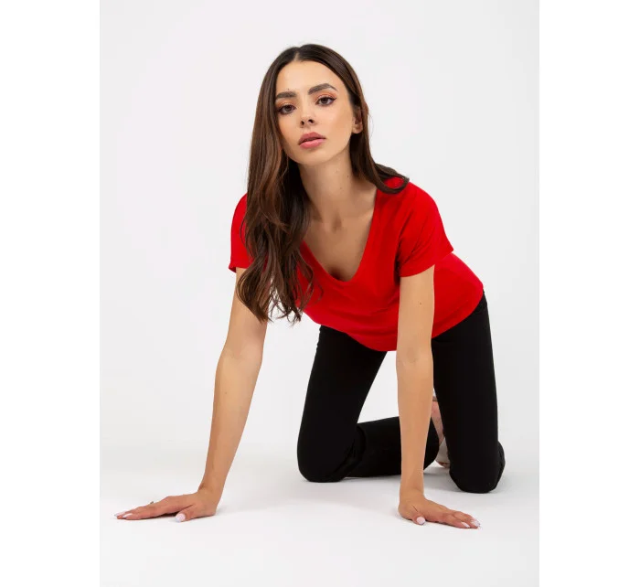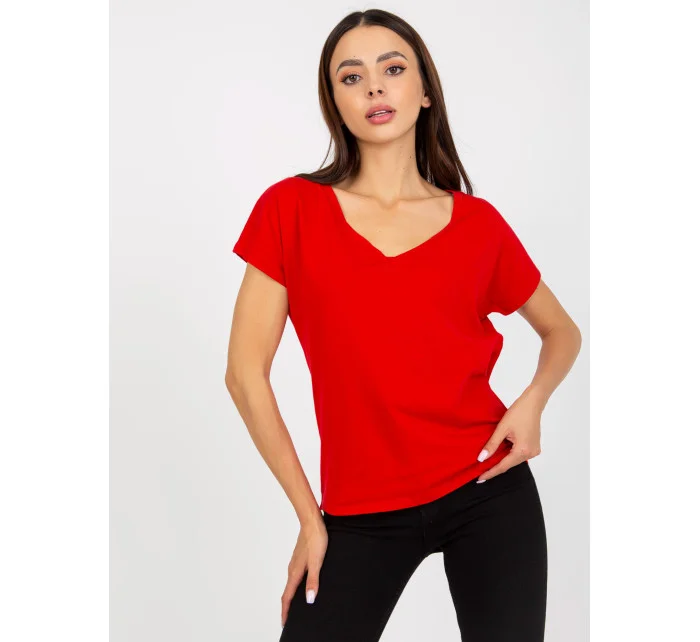 Červené dámské základní tričko z bavlny .