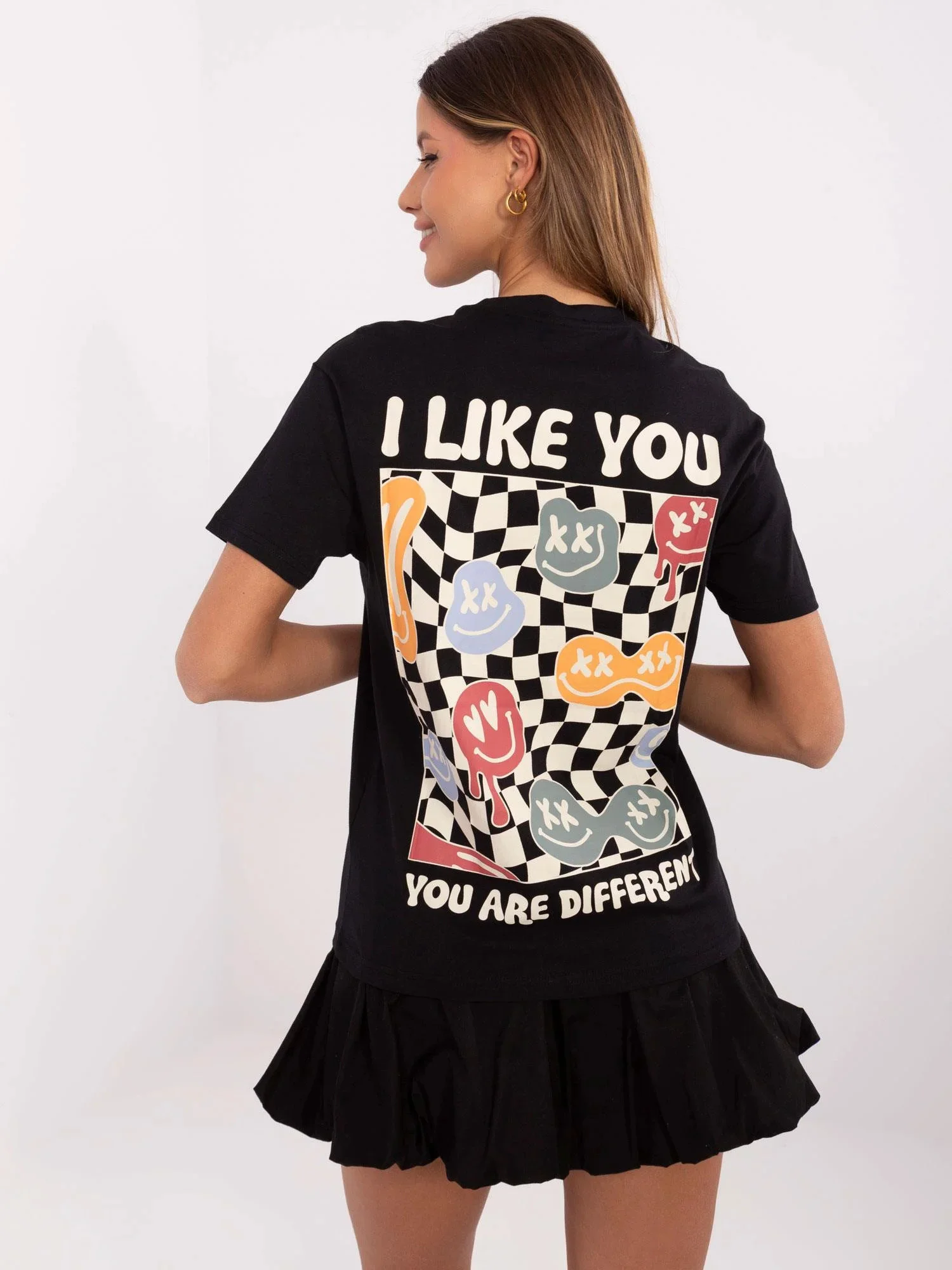 Rozměry trička ve velikosti S měřené na plocho: šířka v podpaží - 52 cm, délka rukávu - 20 cm (od švu), celková délka - 65 cm.
