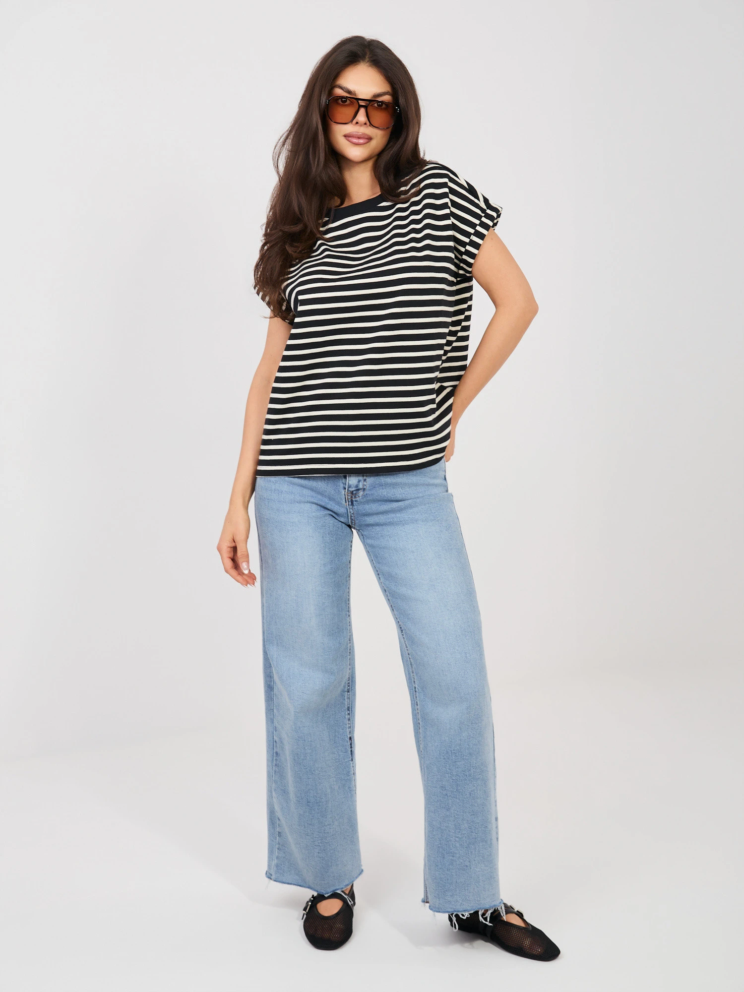 Modelka má na sobě velikost S. Rozměry modelky: výška 173 cm, prsa 85 cm, pas 62 cm, boky 95 cm.
