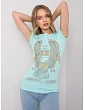 Světle modré dámské tričko s aplikací.