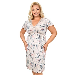 Noční košile nadměrné velikosti 3XL-6XL je navržena s ohledem na pohodlí a volnost pohybu. Jemný květinový potisk působí lehce a romanticky, zatímco výstřih do V lemovaný krajkovou stuhou krásně zvýrazňuje dekolt a dodává mu ženský půvab. Krátký motýlí rukáv působí lehce a elegantně a zároveň poskytuje pohodlí v teplejších dnech.