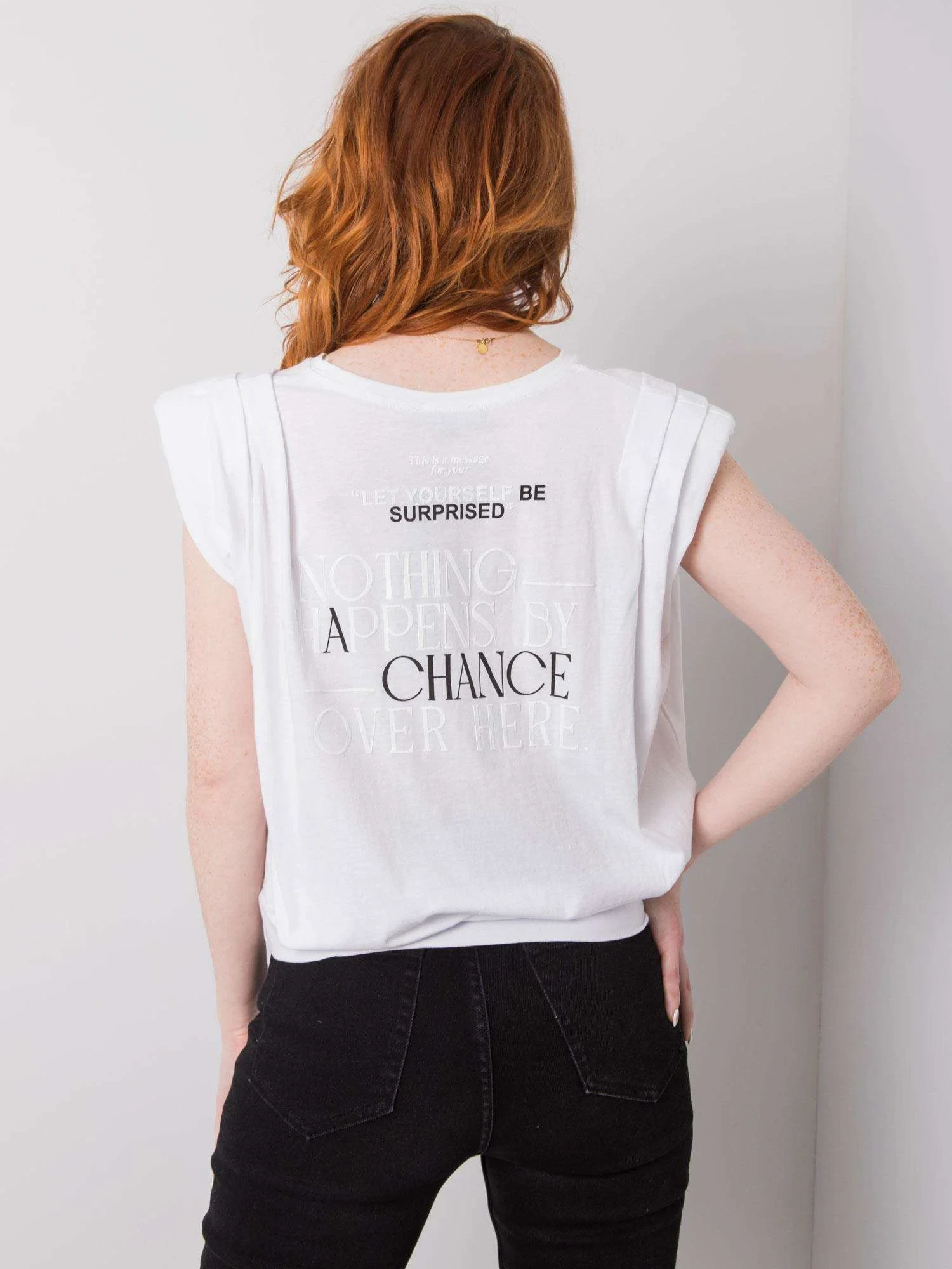 Bílé dámské tričko s nápisy.