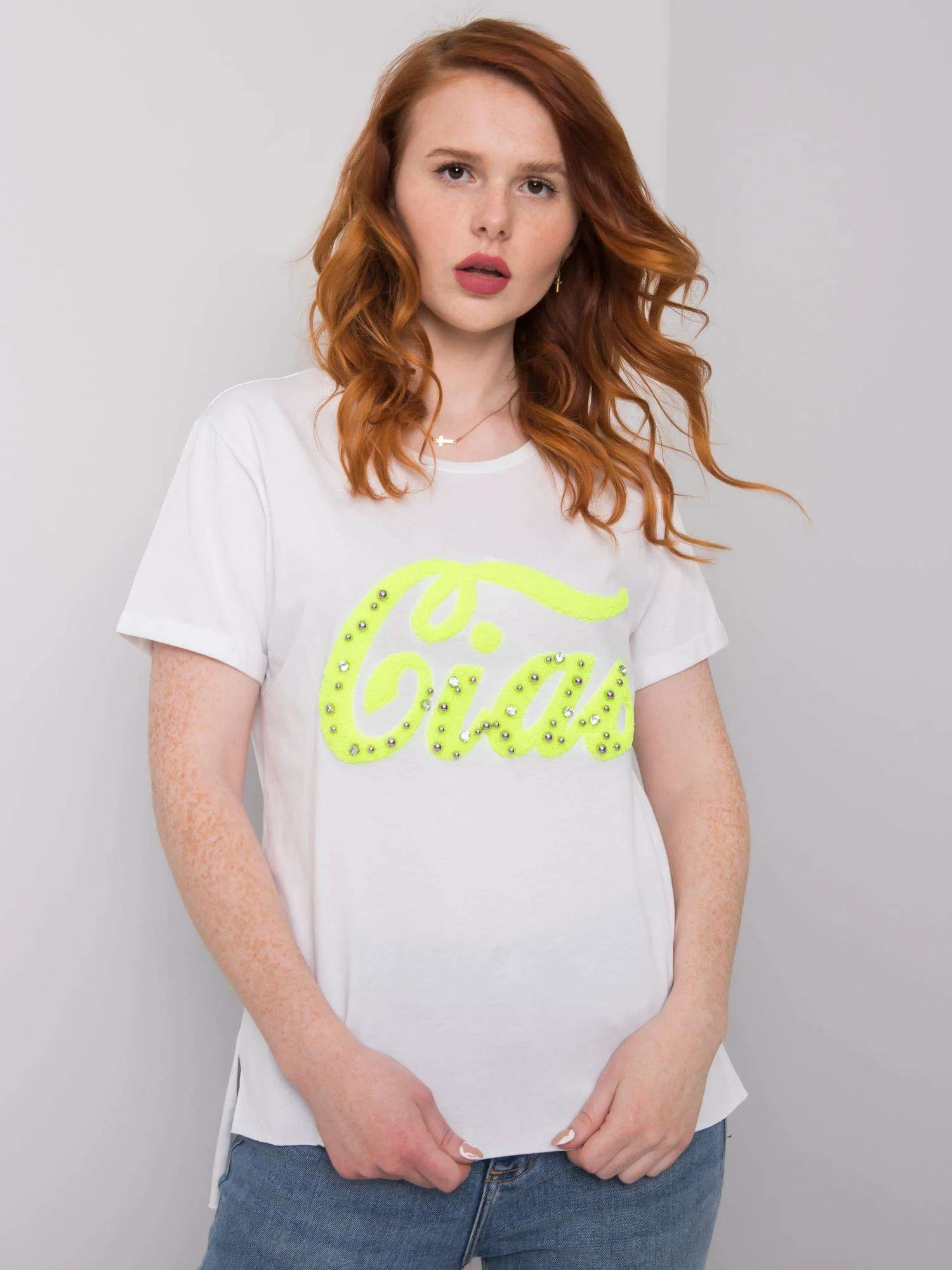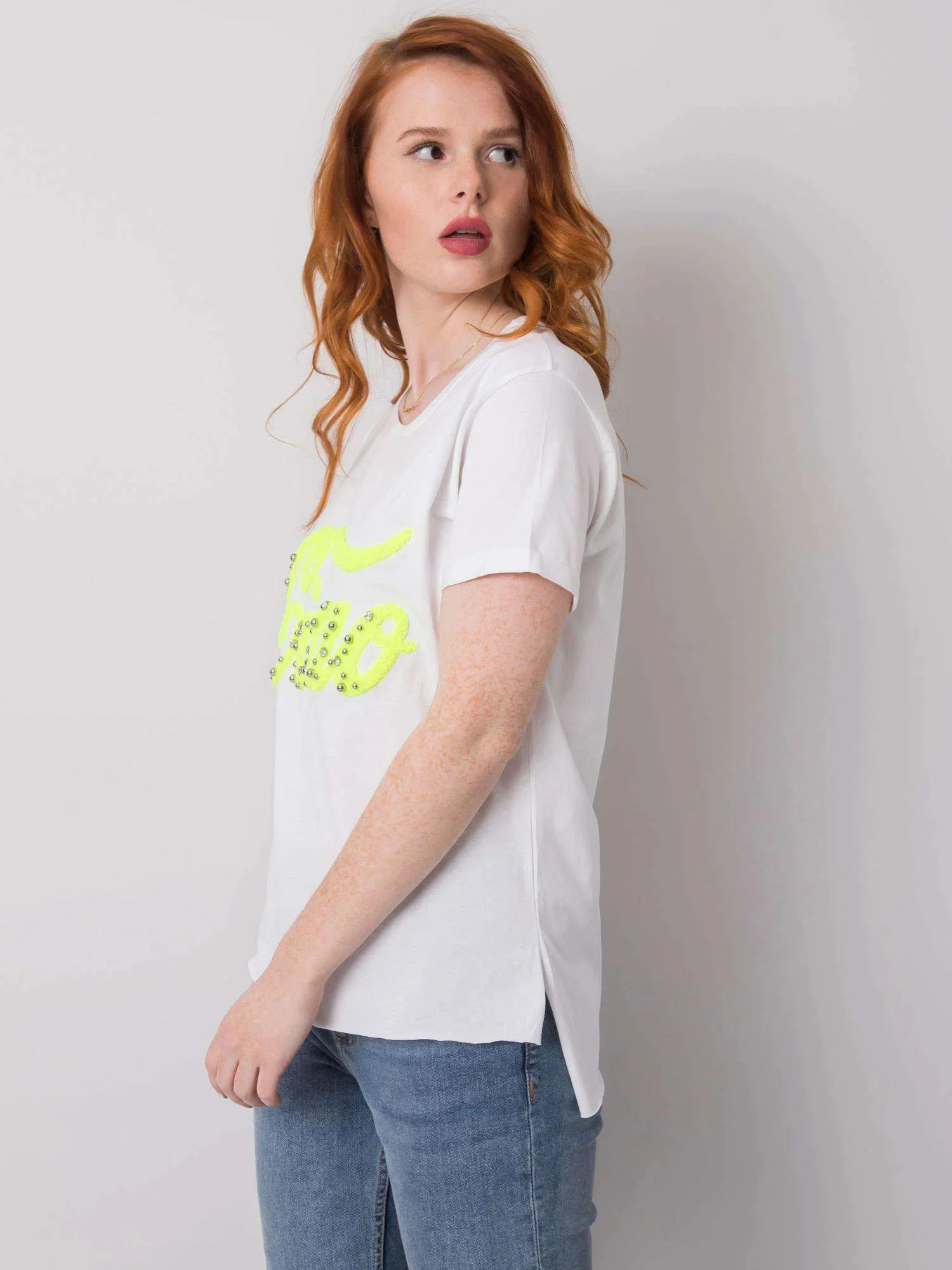 Bílé dámské tričko s aplikací.