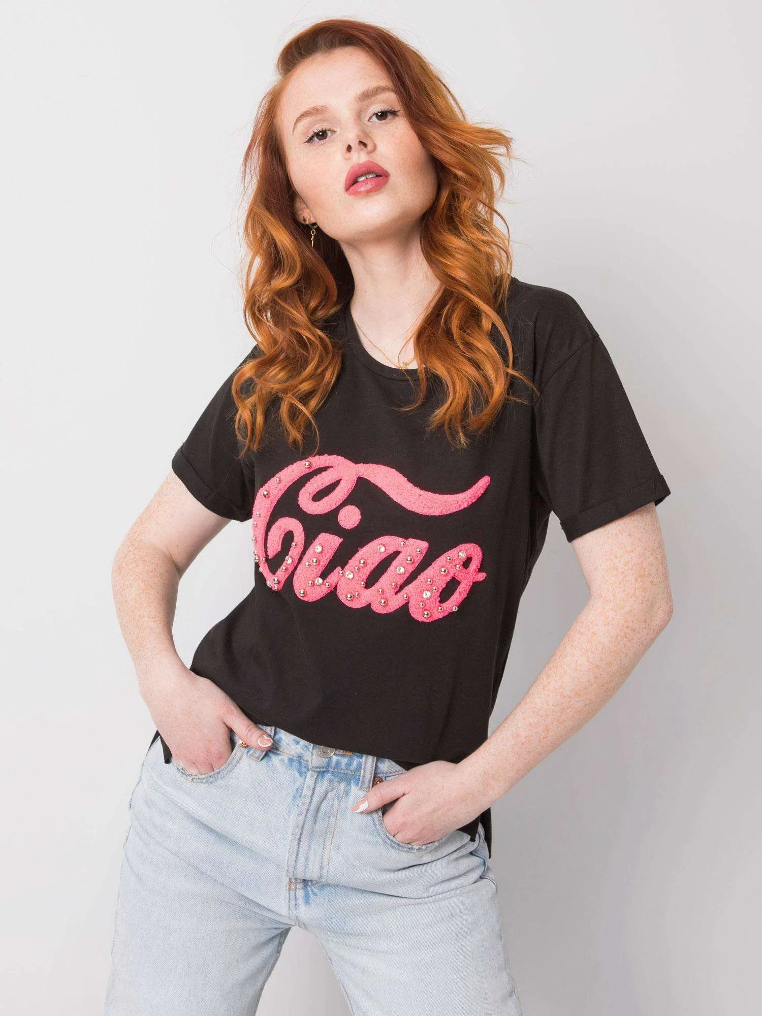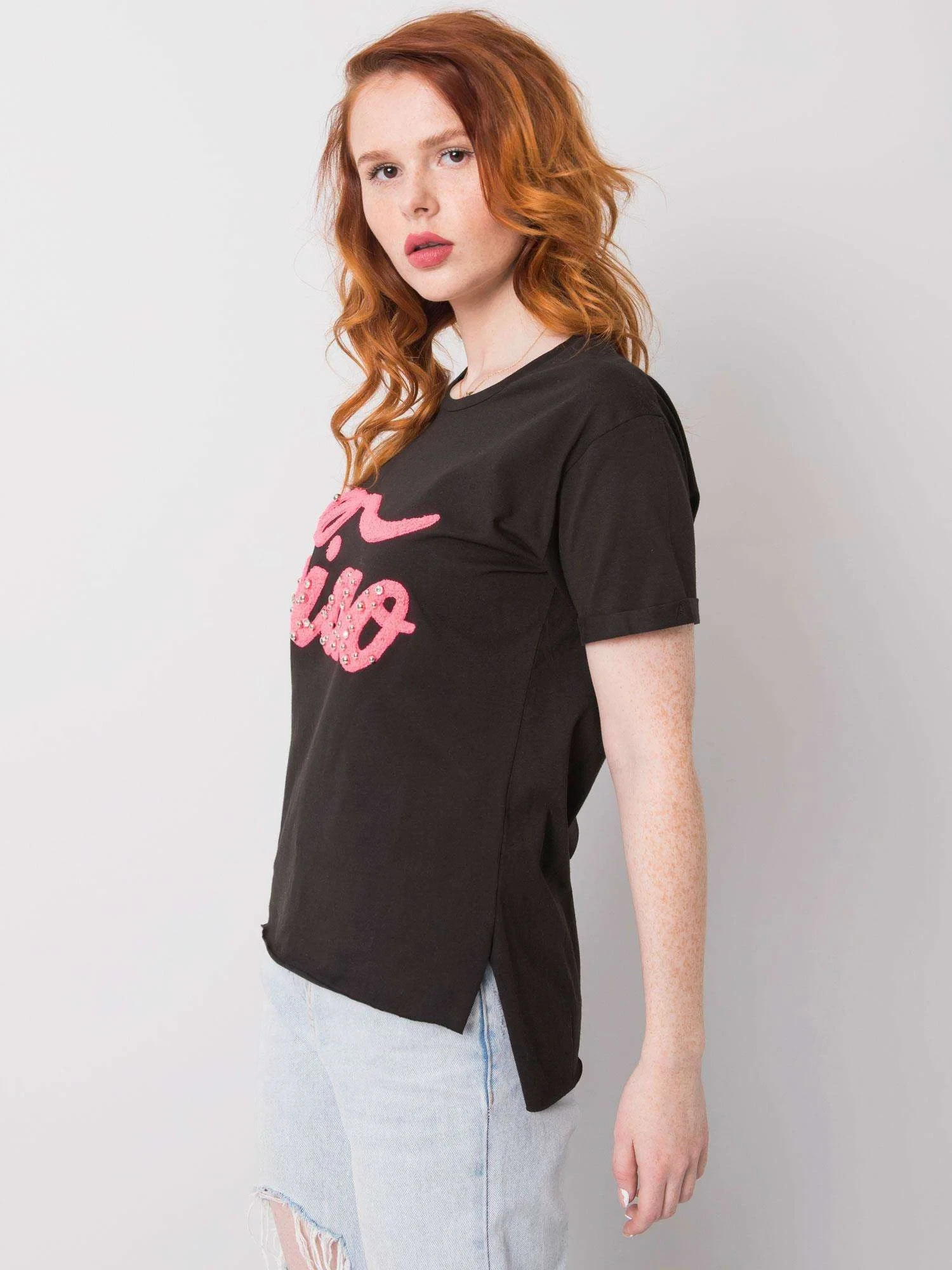 Černé dámské tričko s aplikací.