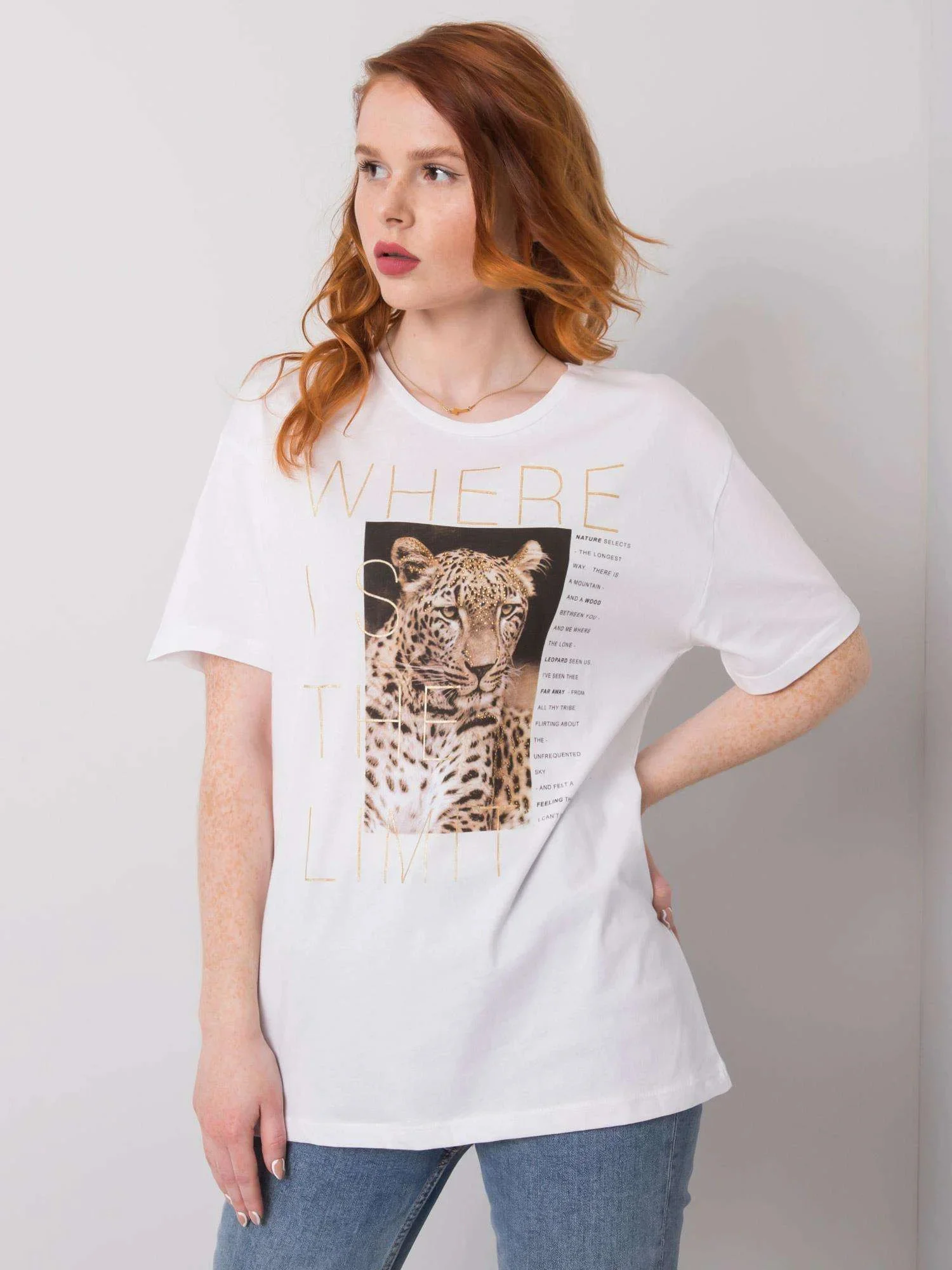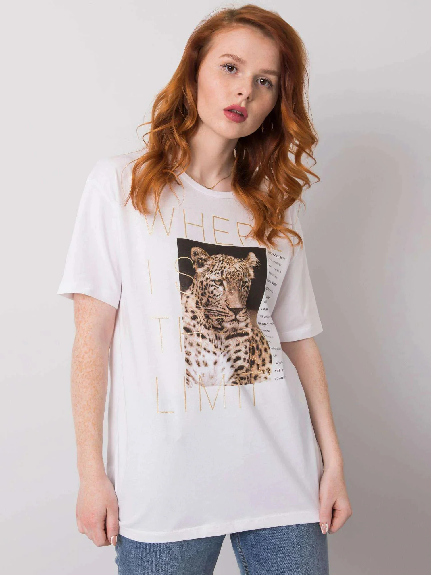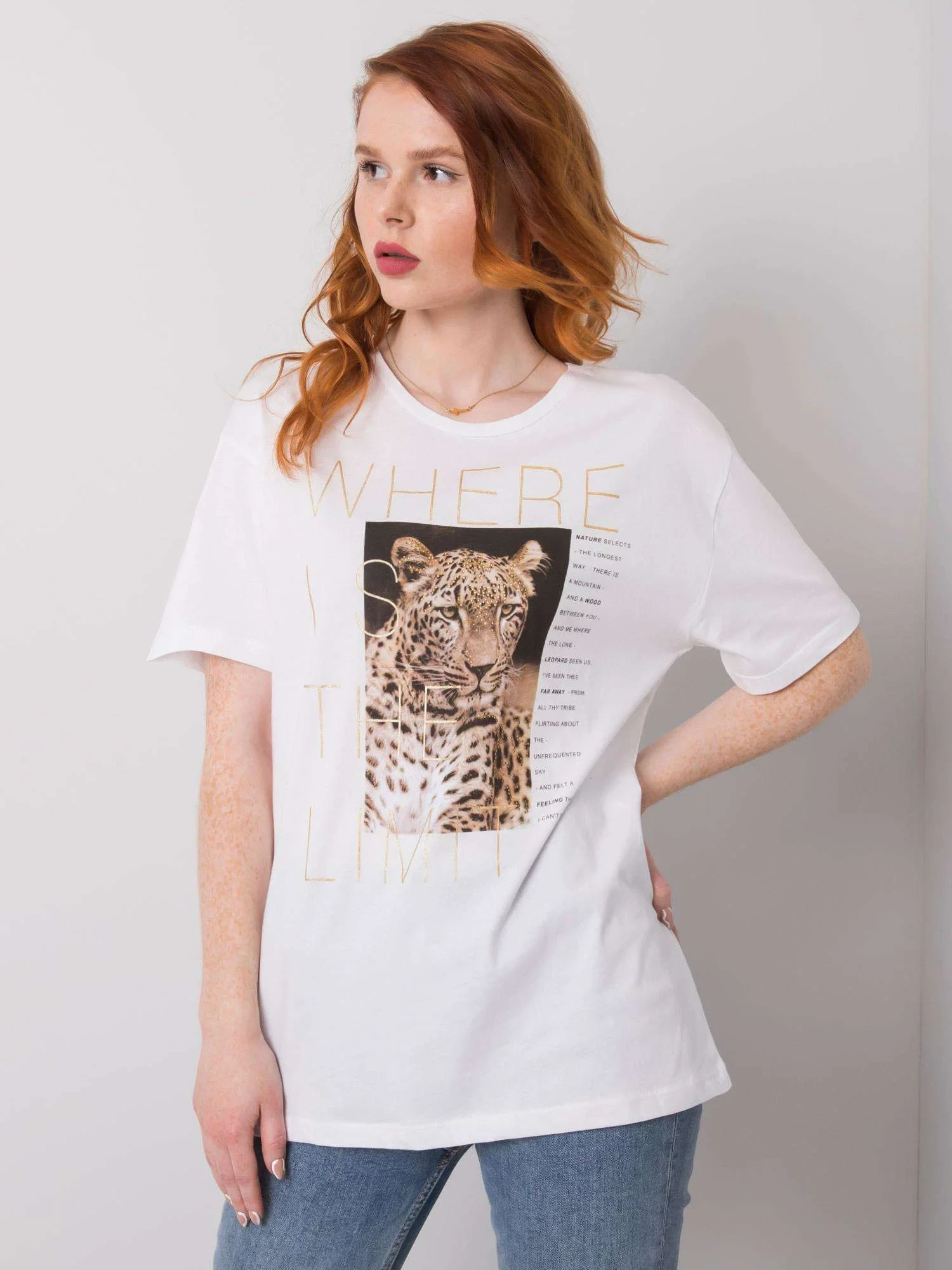 Bílé tričko se zvířecím potiskem.