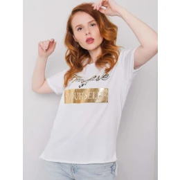 Bílé bavlněné tričko s potiskem a aplikací.