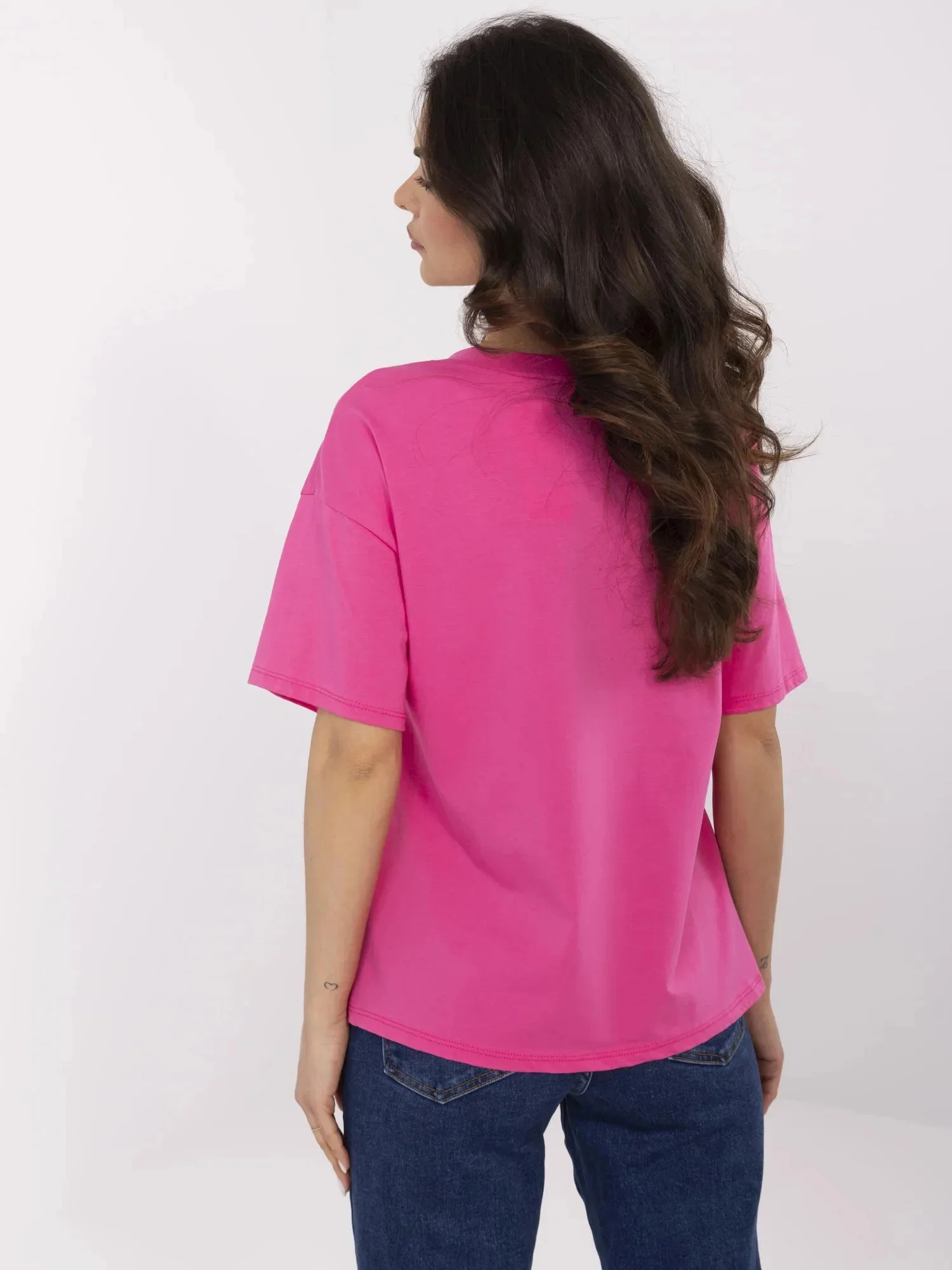 Rozměry trička jedné velikosti měřené na plocho: šířka v podpaží - 54 cm, délka rukávu - 19 cm (od švu), šířka v bocích - 55 cm, celková délka - 61 cm.