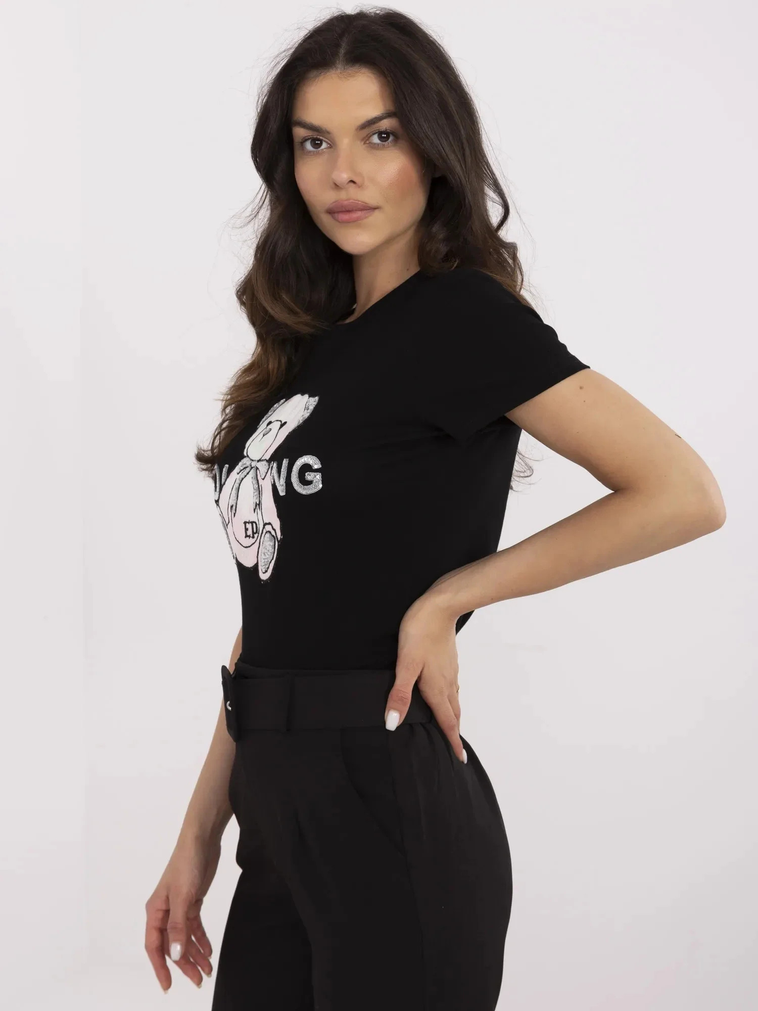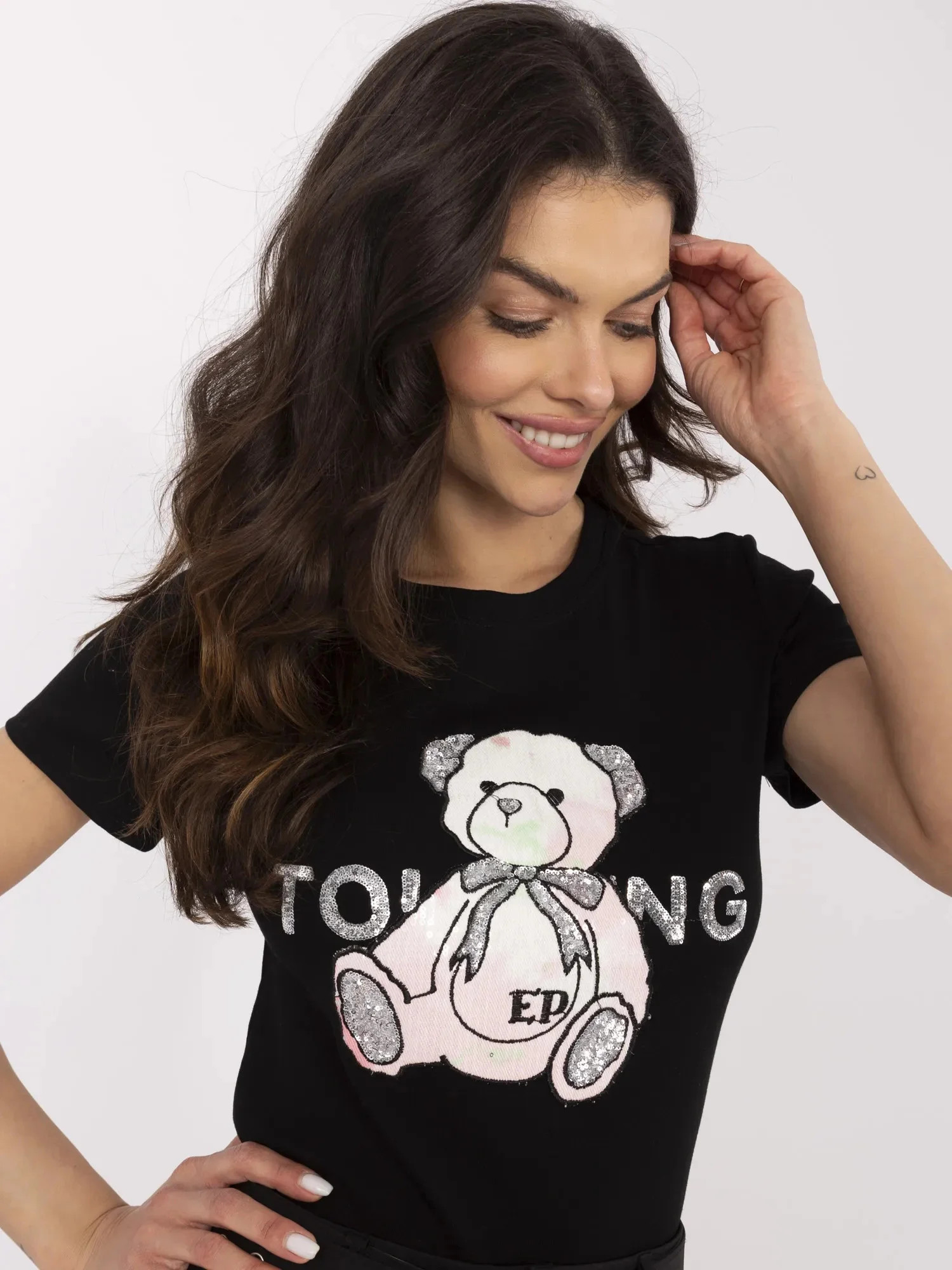 Rozměry trička jedné velikosti měřené na plocho: šířka v podpaží - 44 cm, délka rukávu - 16 cm (od švu), šířka v bocích - 44 cm, celková délka - 61 cm.