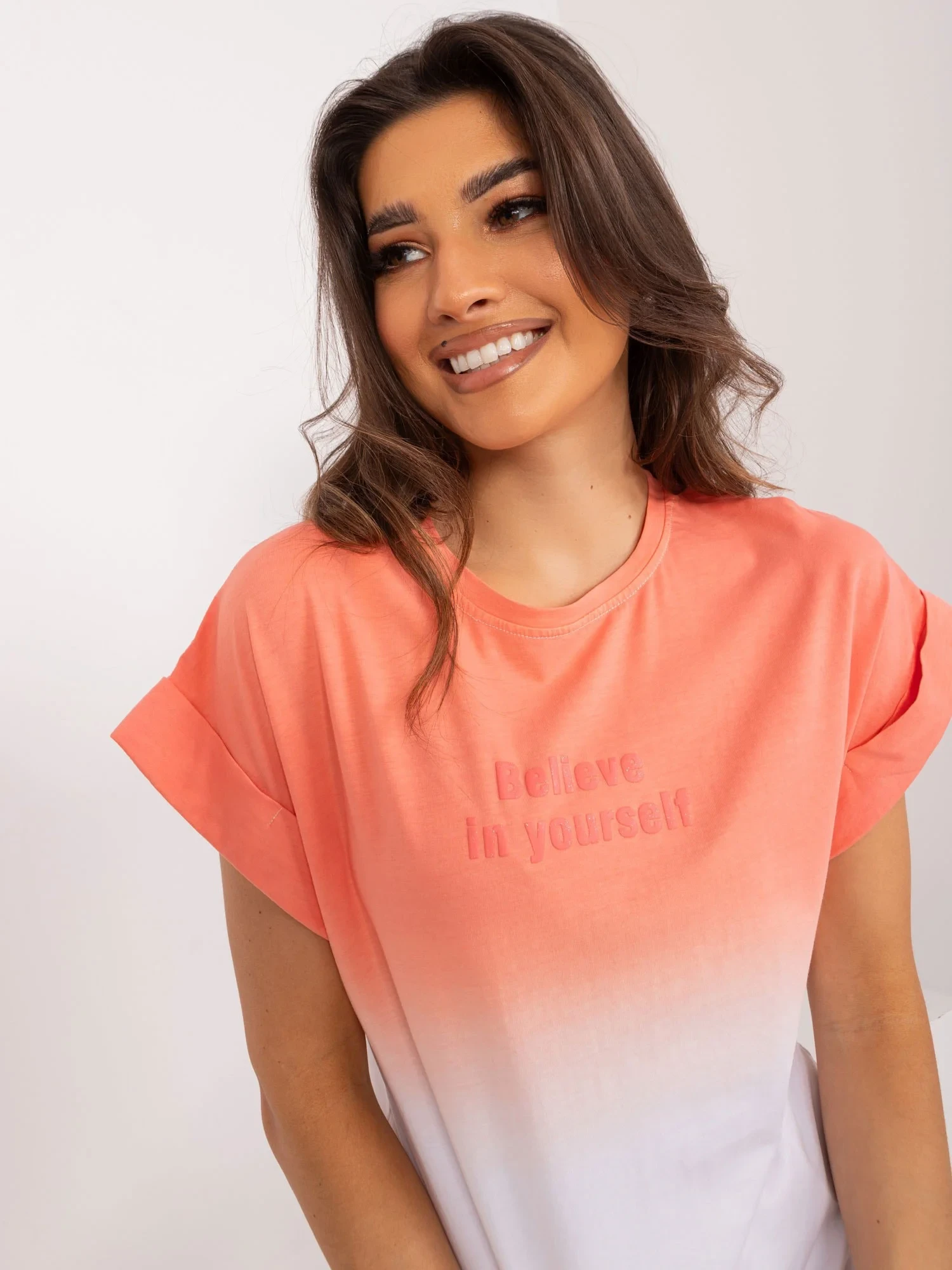 Rozměry trička jedné velikosti měřené na plocho: šířka v podpaží - 49 cm, celková délka - 59 cm.