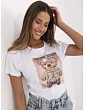Rozměry trička jedné velikosti měřené na plocho: šířka v podpaží - 42 cm, délka rukávu - 16 cm (od švu), šířka v bocích - 42 cm, celková délka - 60 cm (strečový motiv)