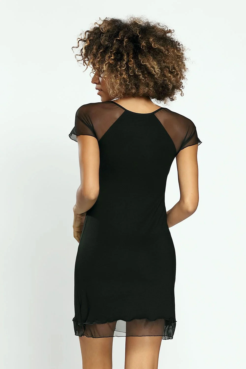 Sexy noční košilka s výstřihem zdobeným květinovou krajkou a krajkovou aplikací pod poprsím. Střih je mírně přiléhavý k tělu. Látka je měkká a pružná a hýčká pokožku. Rukávy jsou z hladkého tylu. 92 % viskóza, 8 % elastan.