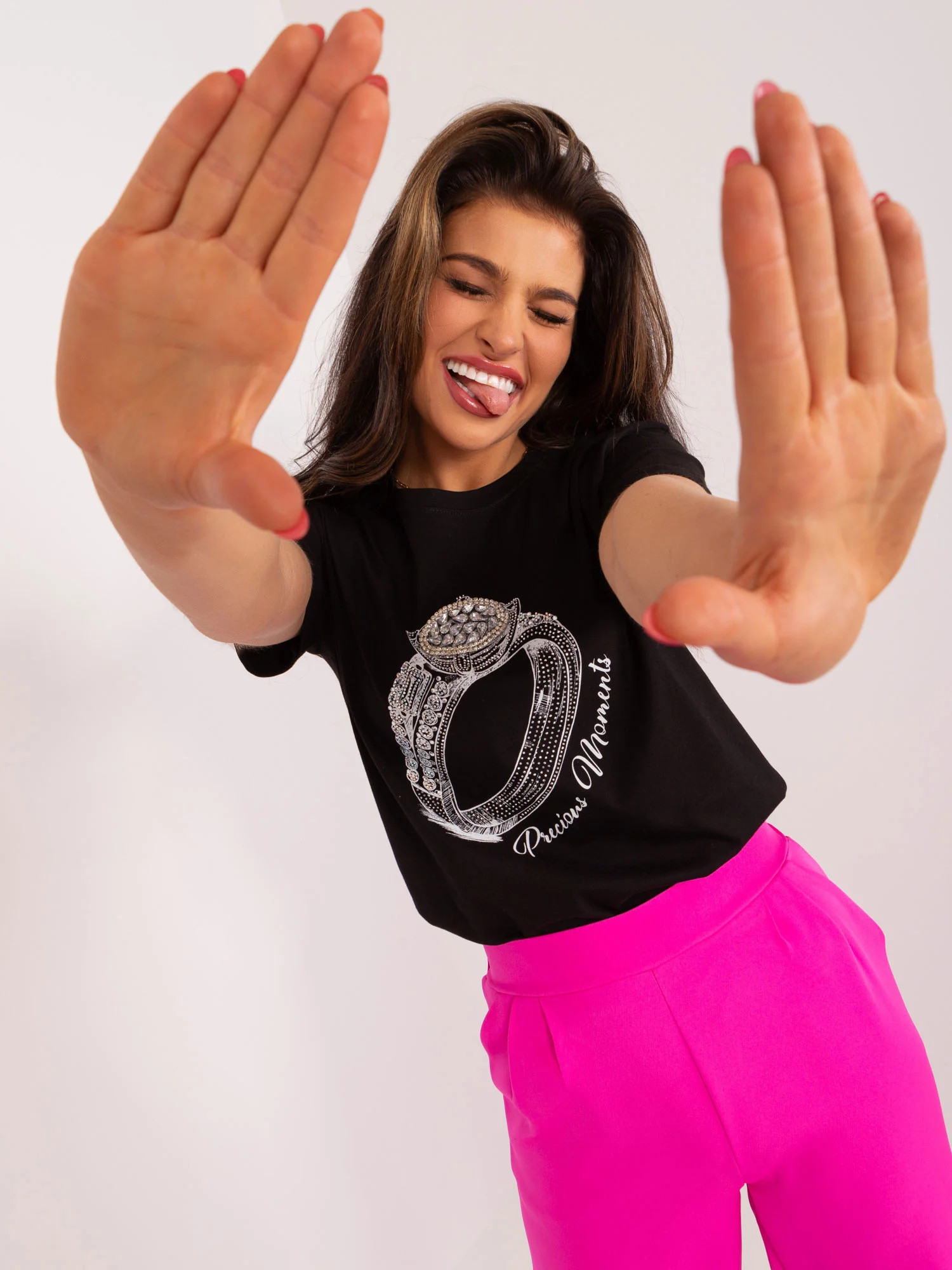 Rozměry trička ve velikosti S měřené naplocho: šířka v podpaží - 48 cm, celková délka - 64 cm.