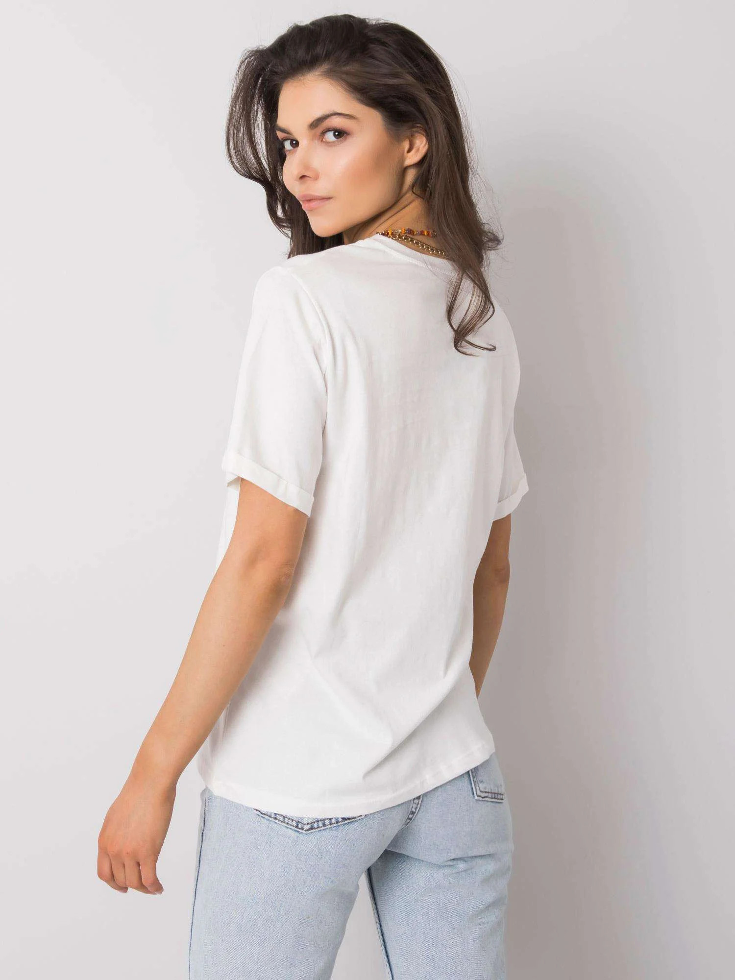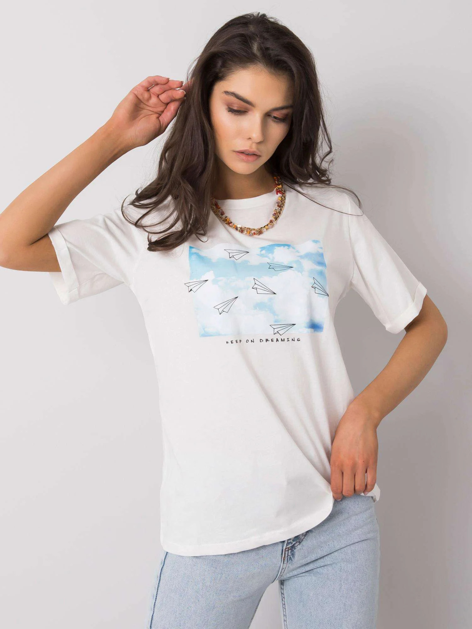 Biały damski t-shirt z printem.