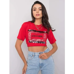 Červené dámské tričko s nápisem.