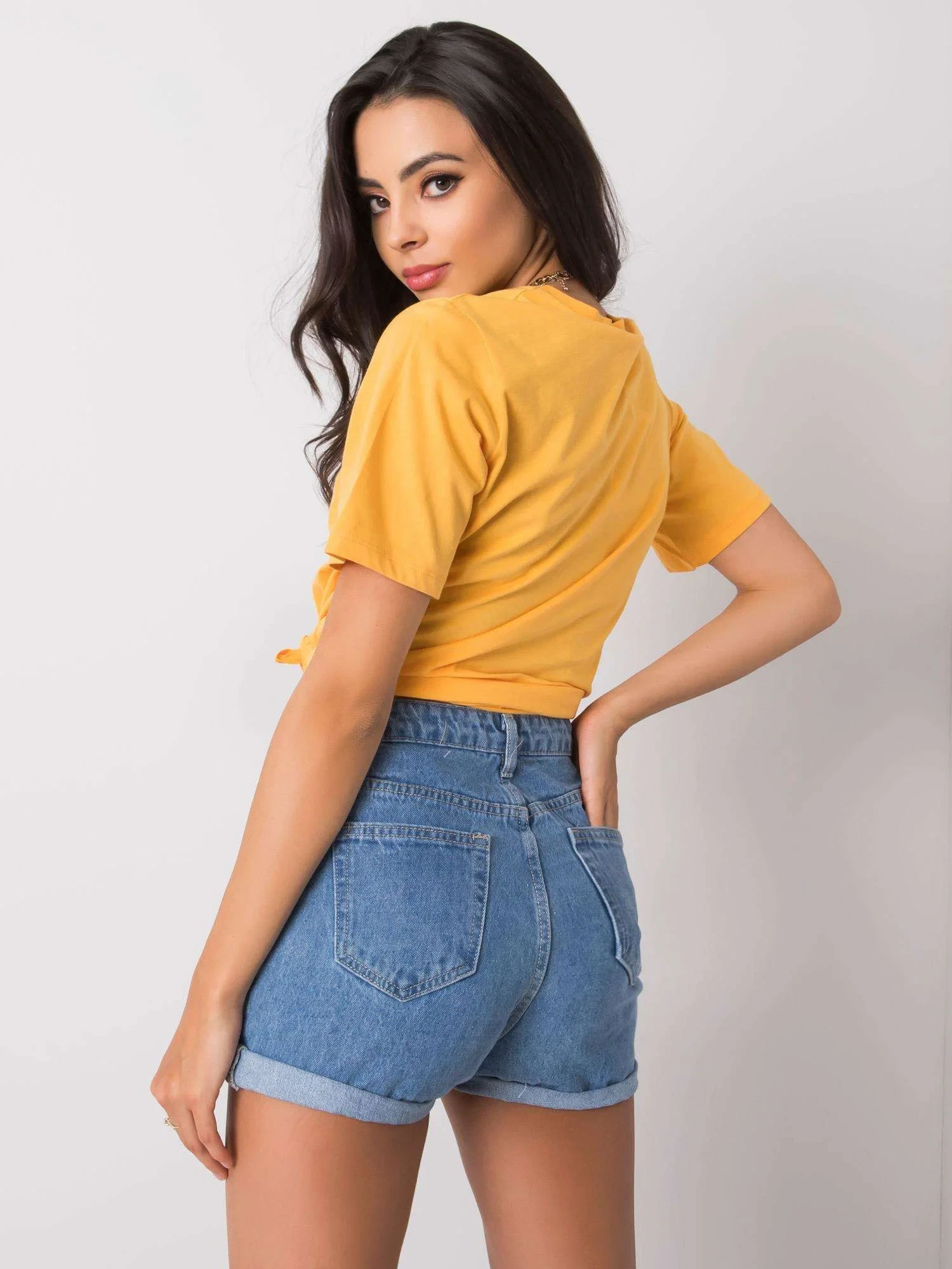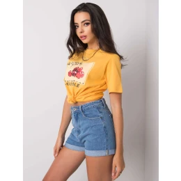 Zářivě oranžové dámské tričko s potiskem a aplikacemi.
