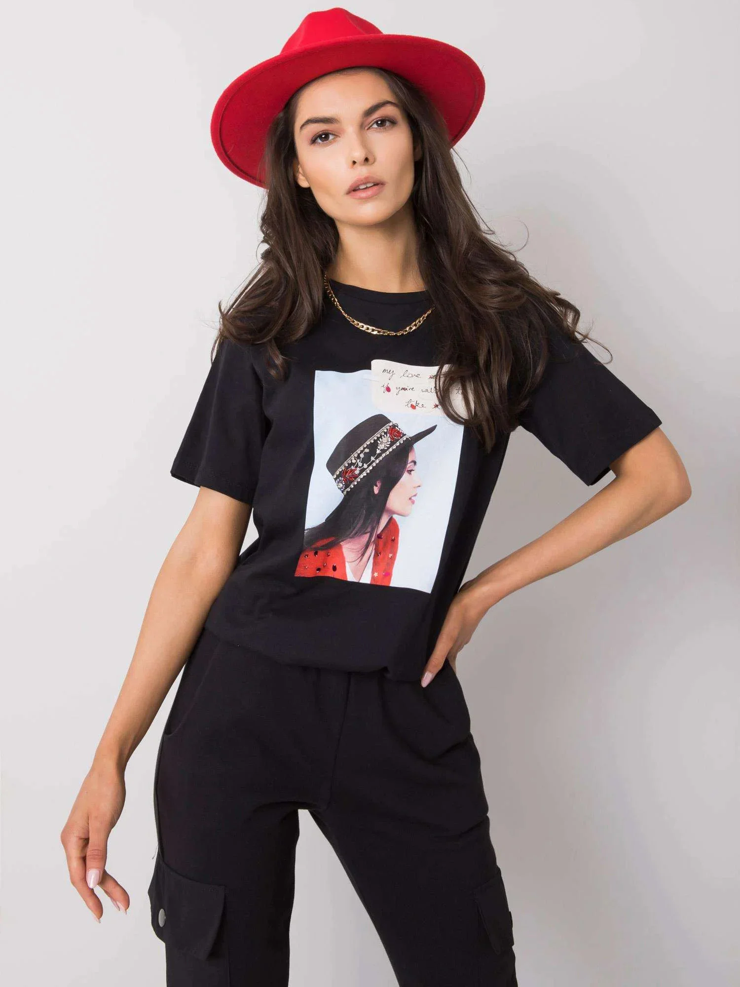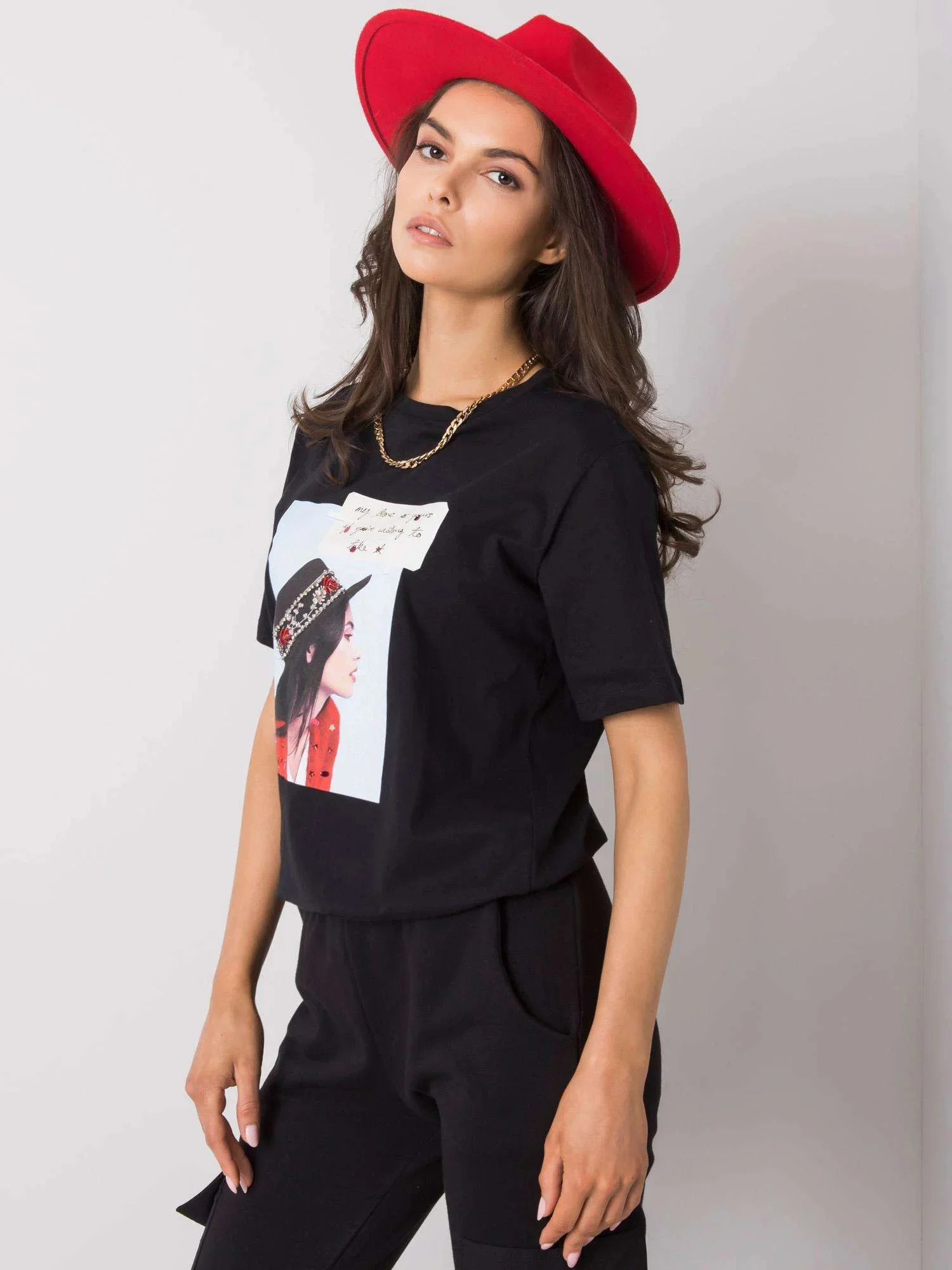 Černé dámské tričko s potiskem.