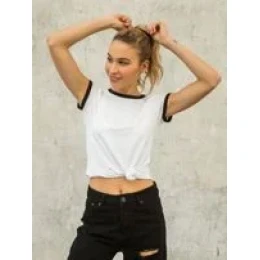 Bílé a černé bavlněné dámské tričko FOR FITNESS, které je nezbytné pro sportovní outfity z nejnovější dámské kolekce.