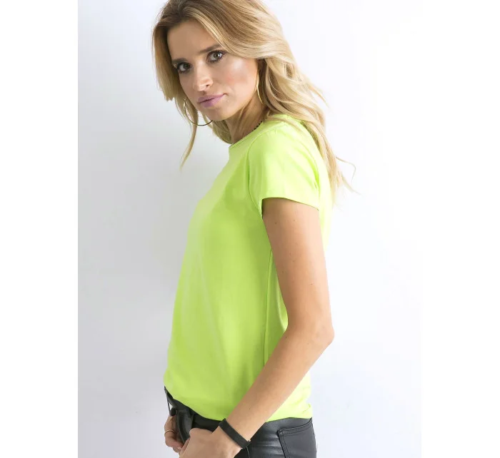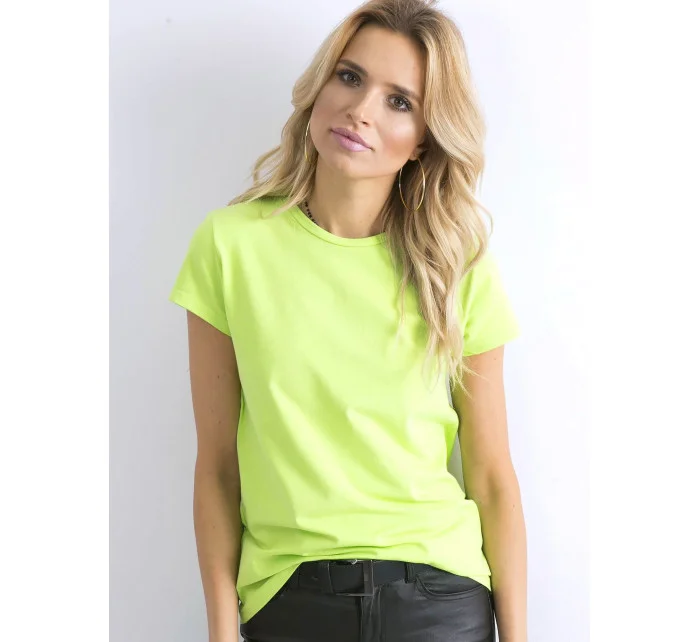 Fluo zelené základní tričko Peachy. Hladké bavlněné tričko je nezbytnou součástí každého ženského šatníku a stalo se železnou klasikou pro módní a zároveň minimalistický a univerzální vzhled, který můžete kombinovat podle vlastního vkusu, protože základní trička jsou dokonalým základem pro další vzhledy, protože se hodí k většině oblečení. Díky klasickým krátkým rukávům a oblíbenému kulatému výstřihu se toto tričko pohodlně nosí a díky svému univerzálnímu střihu se bude skvěle hodit po celý rok. Toto dámské tričko je vyrobeno ze směsi čisté bavlny a malého množství elastanu, takže je prodyšné a pohodlné na nošení!