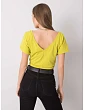 Tričko s výstřihem na zádech světle broskvové barvy.