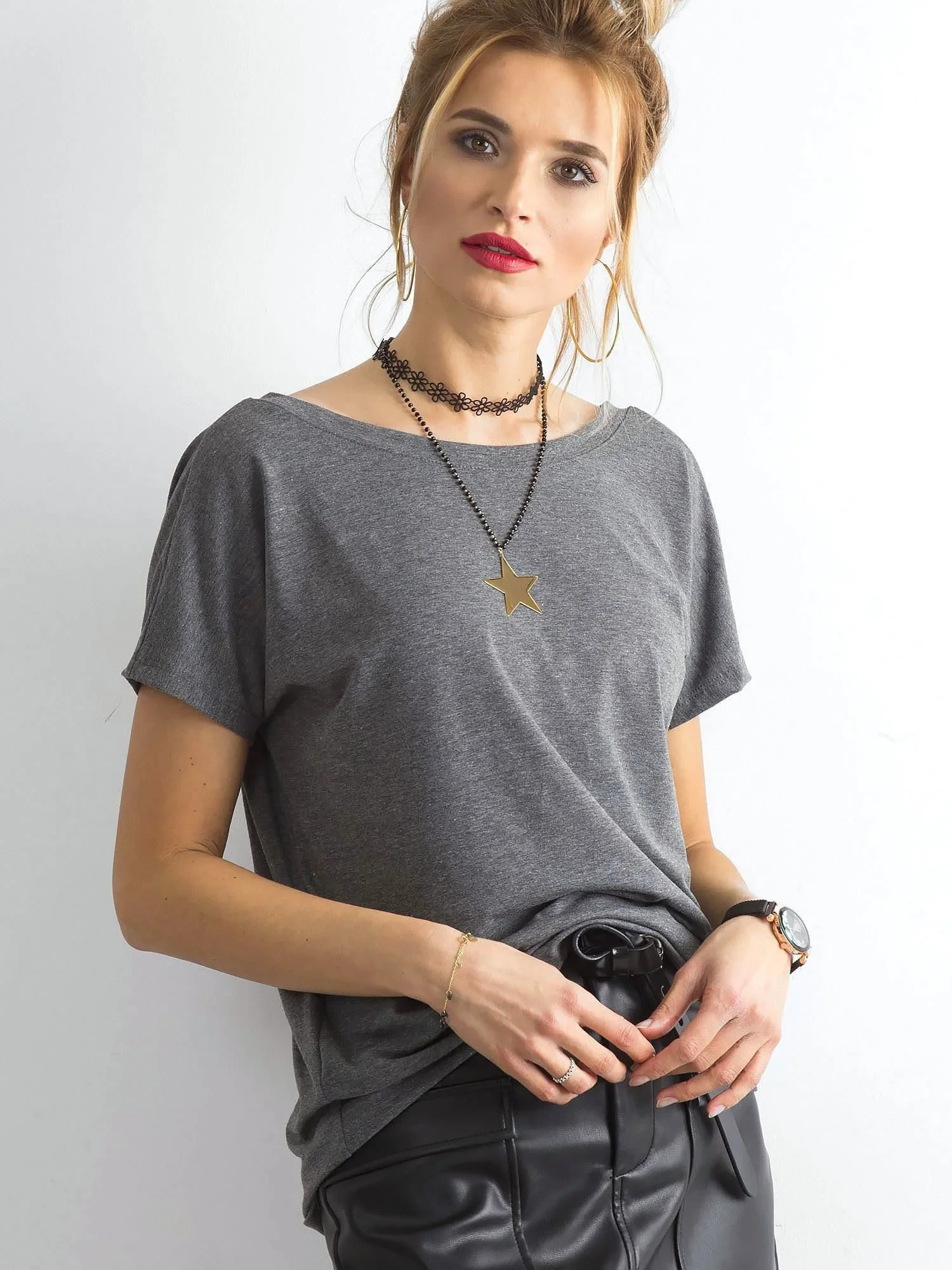 Ciemnoszary t-shirt Fire. Wygodne koszulki damskie to prawdziwy raj dla wszystkich kobiet kochających komfortową modę i najnowsze trendy połączone z komfortowymi fasonami. Na czasie są obecnie ubrania basic, które charakteryzują się prostym designem, są gładkie i w jednym kolorze. Tego typu ubrania są idealną bazą do tworzenia różnego rodzaju stylizacji na każdą okazję, także na tę nieco bardziej wyjściową. Taki jest właśnie ten damski t-shirt basic z naszej najnowszej kolekcji podstawowej. Dzięki niemu będziesz w stanie tworzyć na co dzień dowolne stylizacje na różne okazje, które możesz łatwo modyfikować w zależności od doboru butów i dodatków. Taka koszulka basic pasuje bowiem do stroju sportowego, a także do eleganckiej stylizacji ze spódnicą i szpilkami w roli głównej. Zaskocz wszystkich i zobacz jak pomysłowe mogą być zestawy z t-shirtem basic! Noś go zgodnie z własnymi upodobaniami i koniecznie wypróbuj rozmaite style, które pozwolą Ci zachować róż