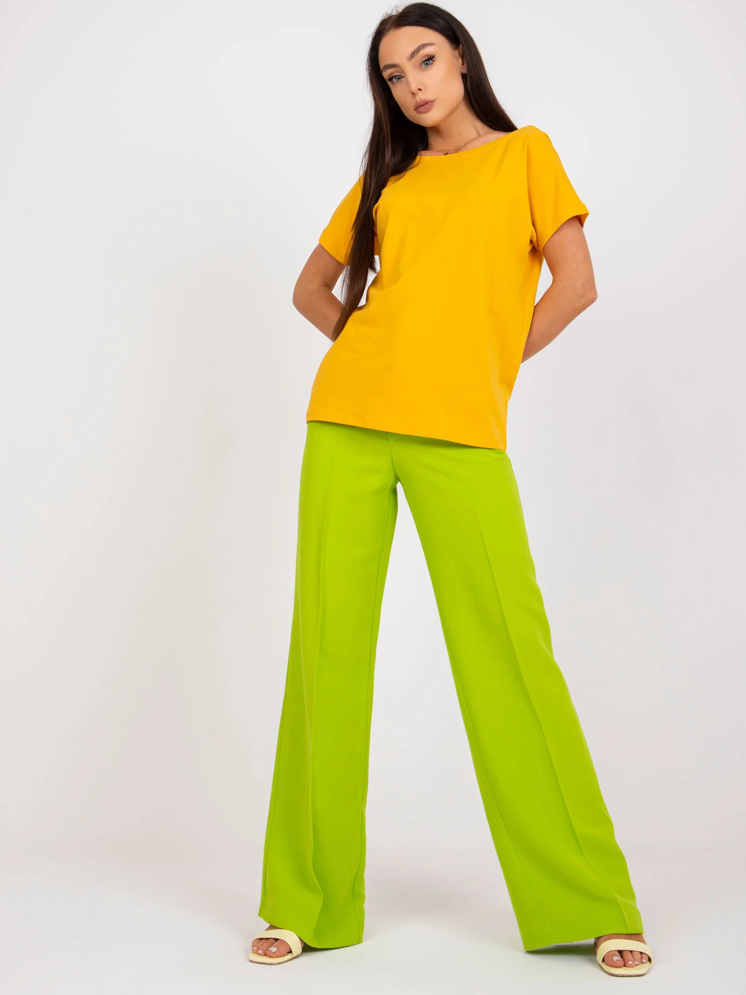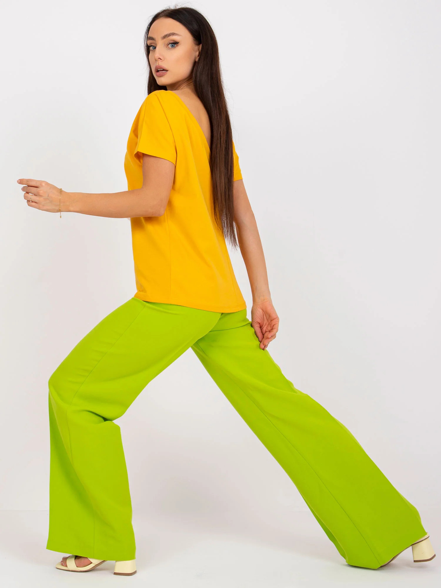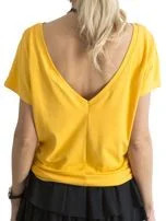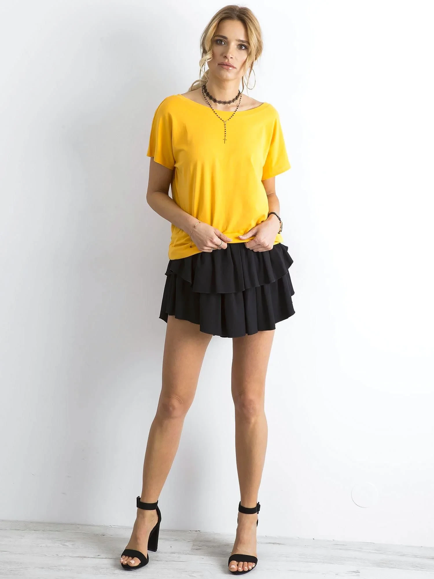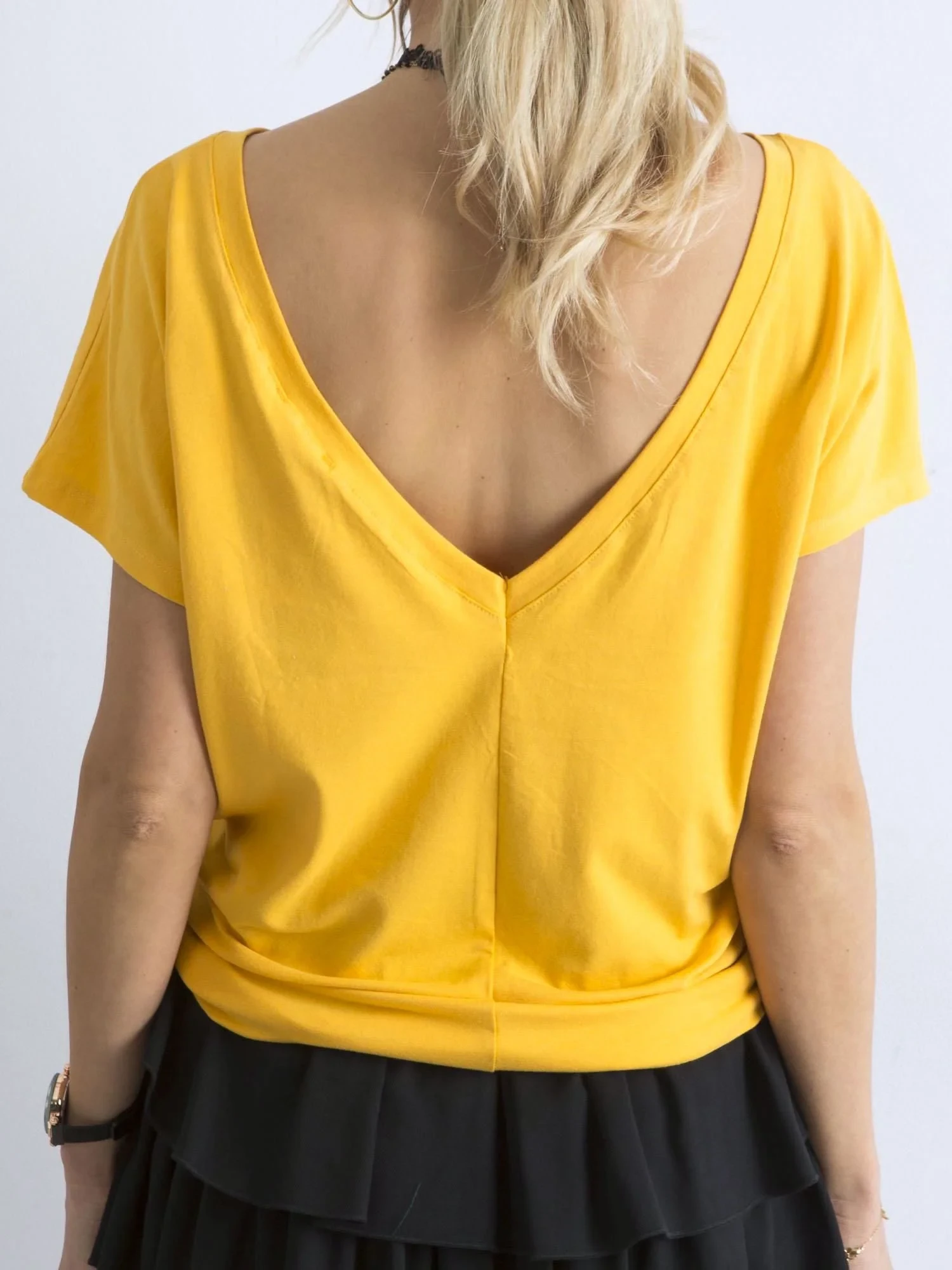 Ciemnożółty t-shirt damski Fire . Damskie t-shirty basic są już kultowymi ubraniami, które każda kobieta chce mieć w swojej szafie. Jeśli jeszcze nie masz odpowiednio obszernej kolekcji basic'ów to zmień to z nami jak najszybciej, a Twoje codzienne stylizacje zyskają nutę klasycznego szyku. Pozwalają one budować rozmaite stylizacje, które z powodzeniem sprawdzają się w różnych sytuacjach, nie tylko tych typowo casualowych, ale także i nieco bardziej wyjściowych. T-shirty basic są doskonałe do szkoły, na uczelnię czy spotkania ze znajomymi, ale pójdziesz w nich również do pracy lub na półformalny meeting biznesowy z cygaretkami i elegancką marynarką w roli głównej. Ten t-shirt damski basic noś tak jak lubisz: gdy jest ciepło załóż go do szortów lub spódnicy, a jeśli jest chłodno to włóż długie spodnie i zarzuć na ramiona kardigan lub rozpinaną bluzę. Taka luźna koszulka jest jak kameleon, ponieważ idealnie dopasowuje się do każdej stylizacji, jaka przyjdzi