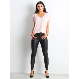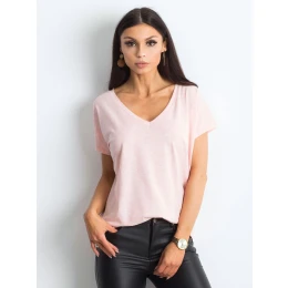 Melanžové tričko s výstřihem do V ve světle růžové barvě.