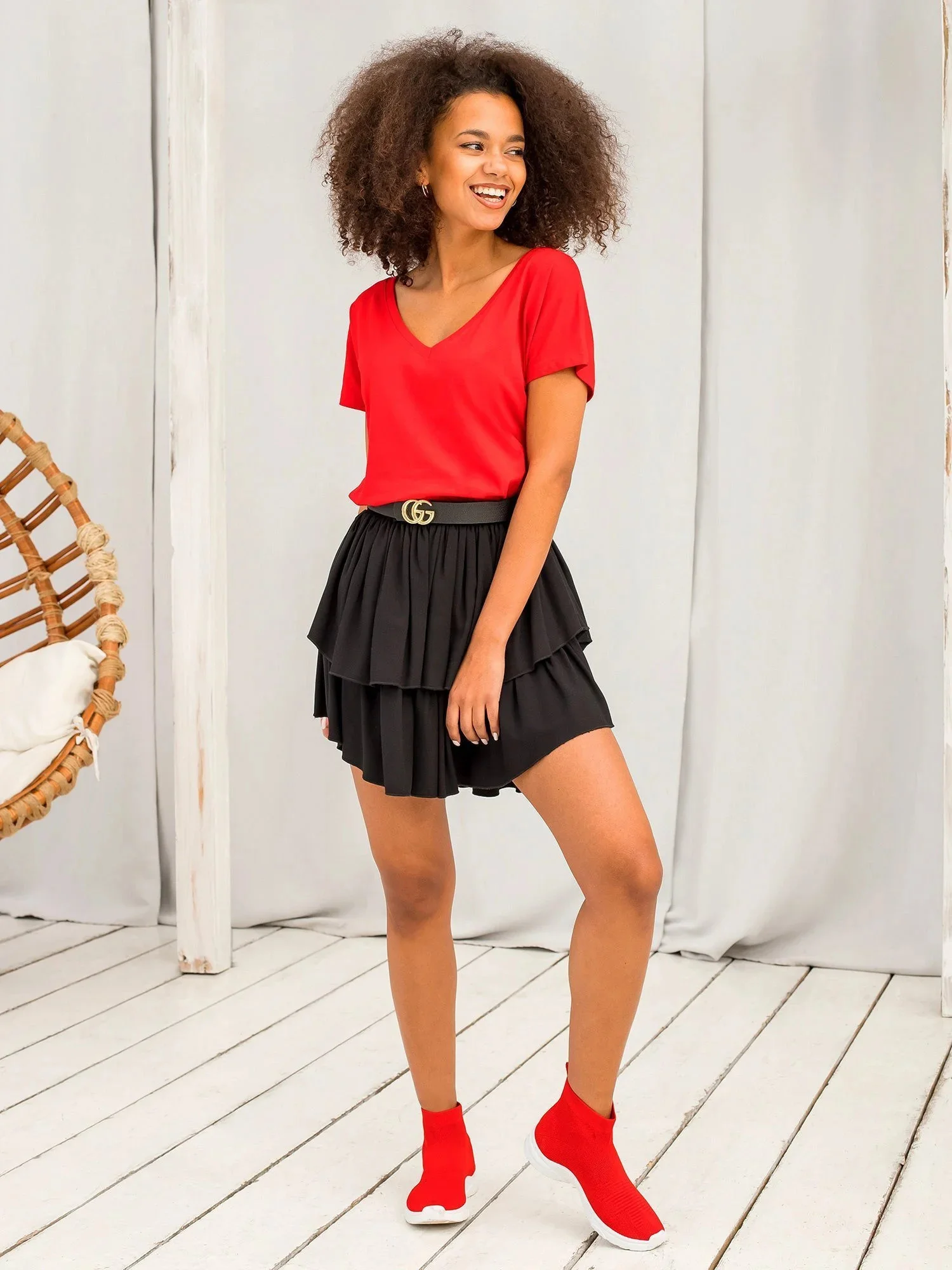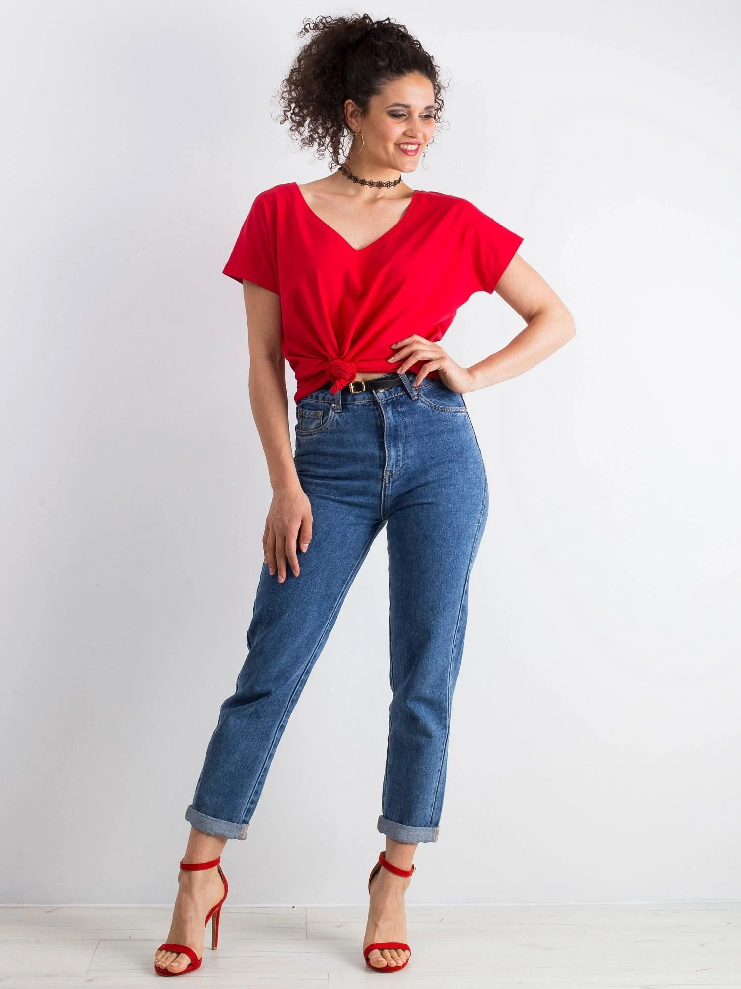 Bavlněné tričko s výstřihem do V červené.