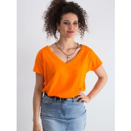 Bavlněné fluo oranžové tričko s výstřihem do V.