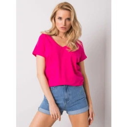 Fuchsiové bavlněné tričko s výstřihem do V.