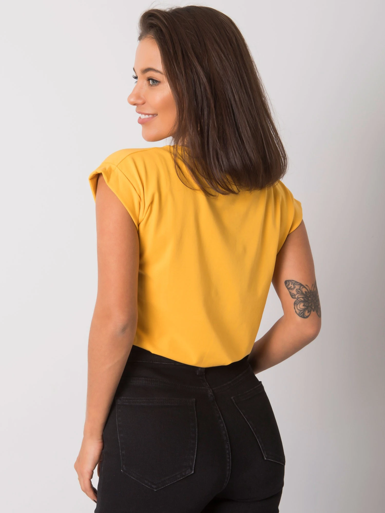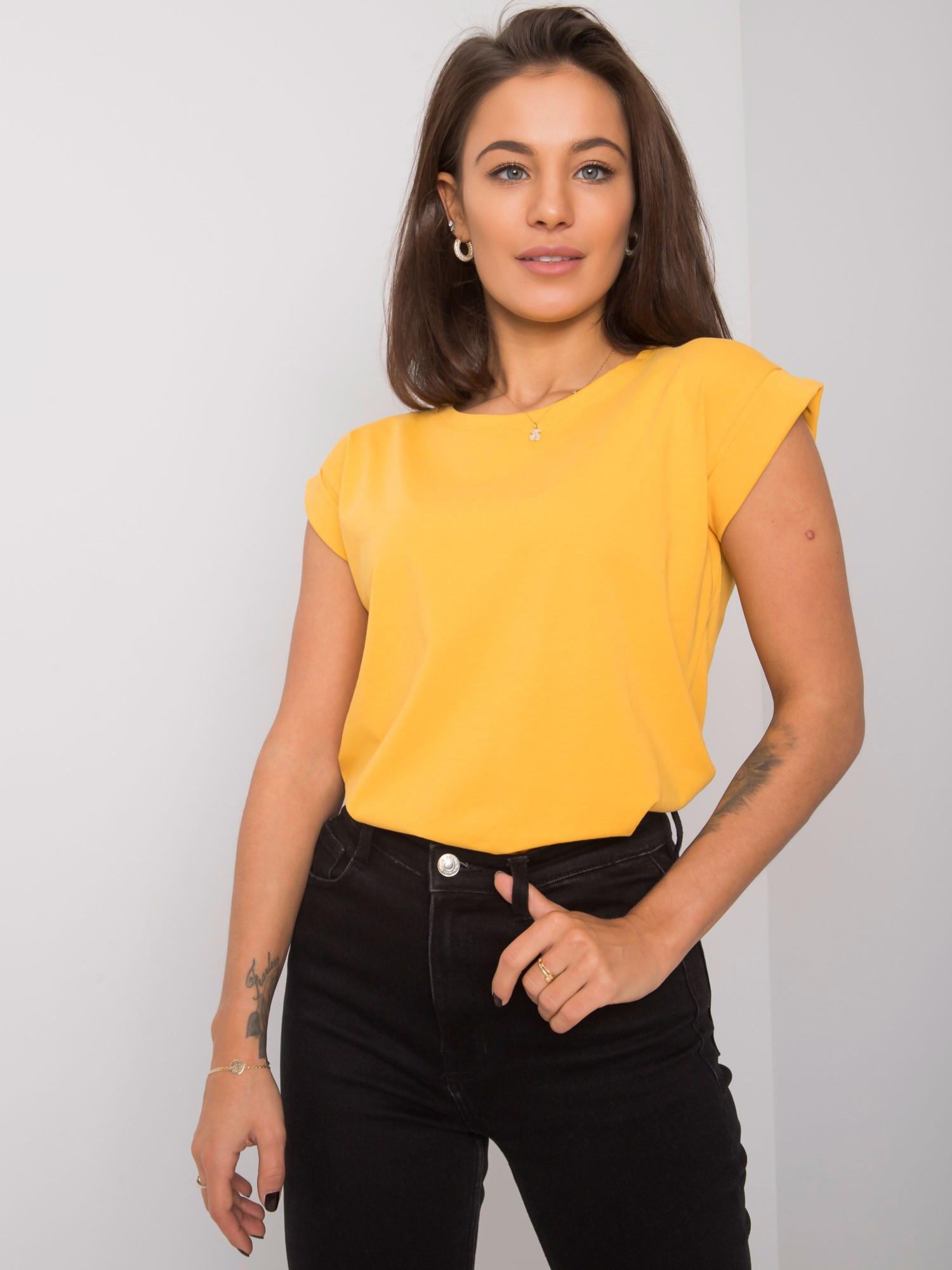 Hladké dámské tričko v jasně oranžové barvě.