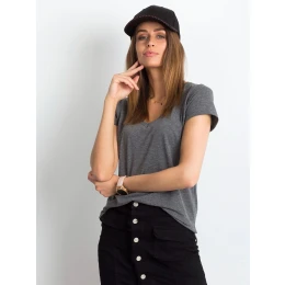 Tmavě šedé melanžové tričko s výstřihem.