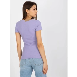 Světle fialová žebrovaná halenka s krátkými rukávy .