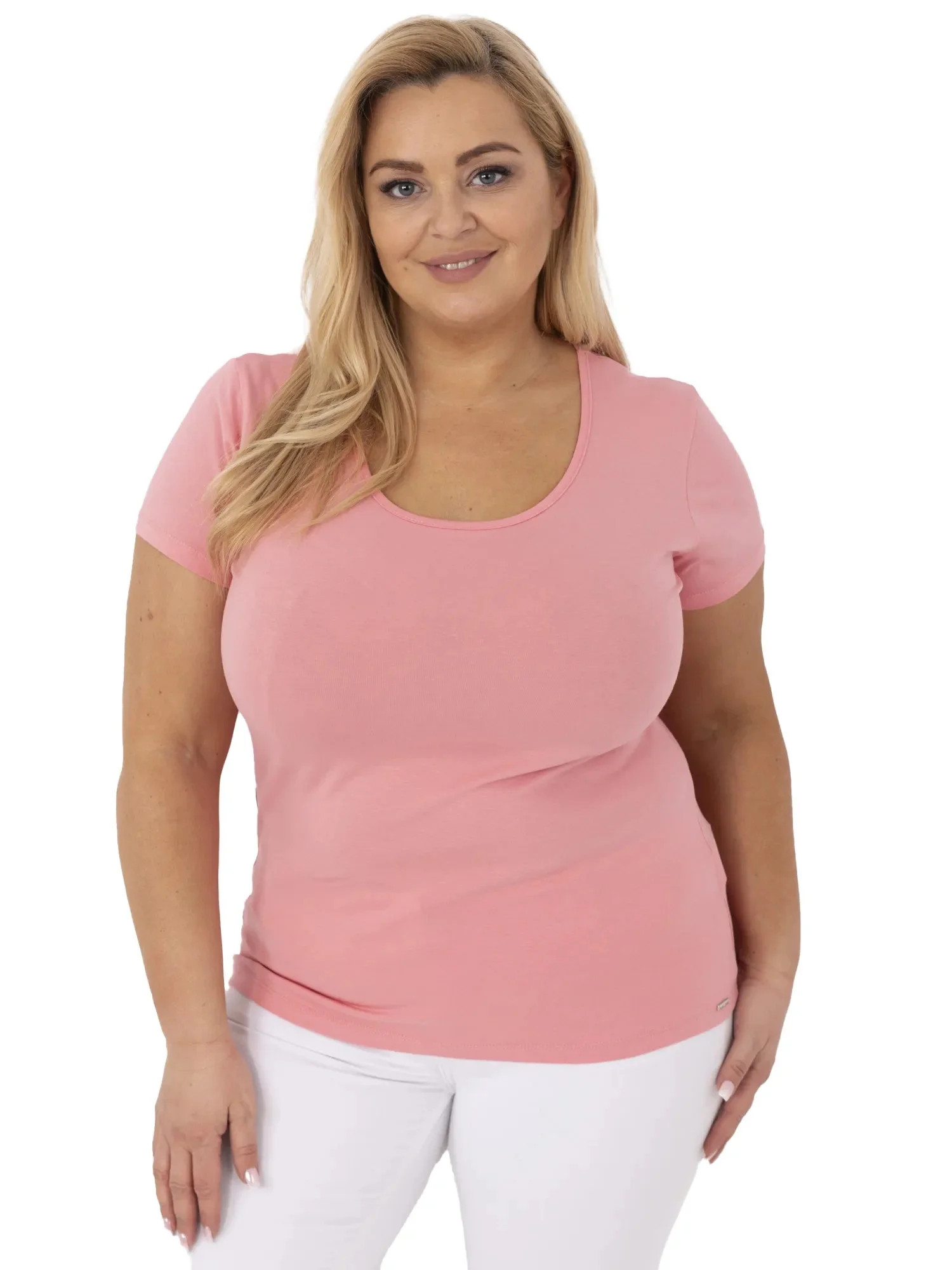 Modelka má na sobě velikost 2XL. Rozměry modelky: výška 167 cm, poprsí 118 cm, pas 90 cm, boky 118 cm.