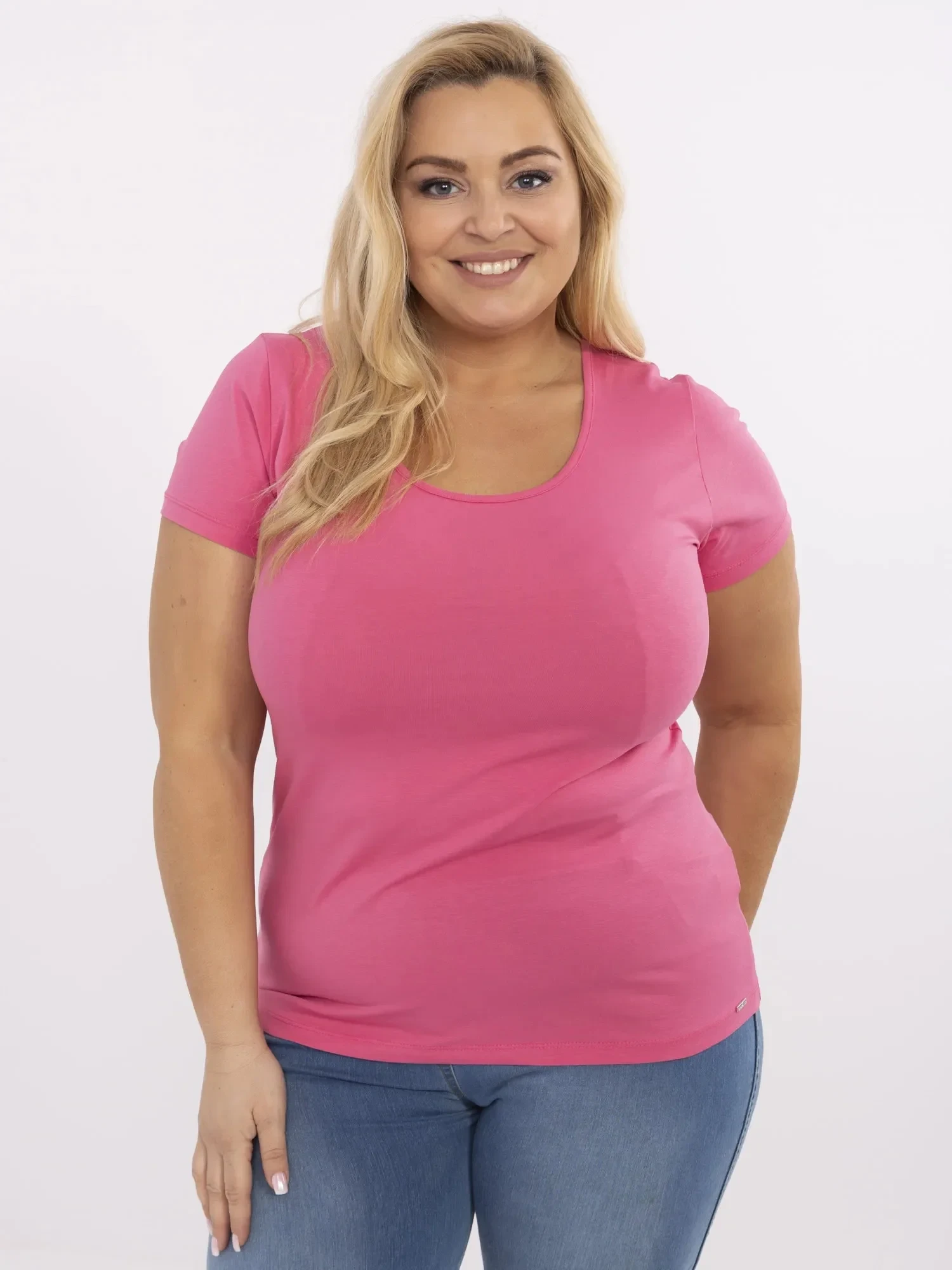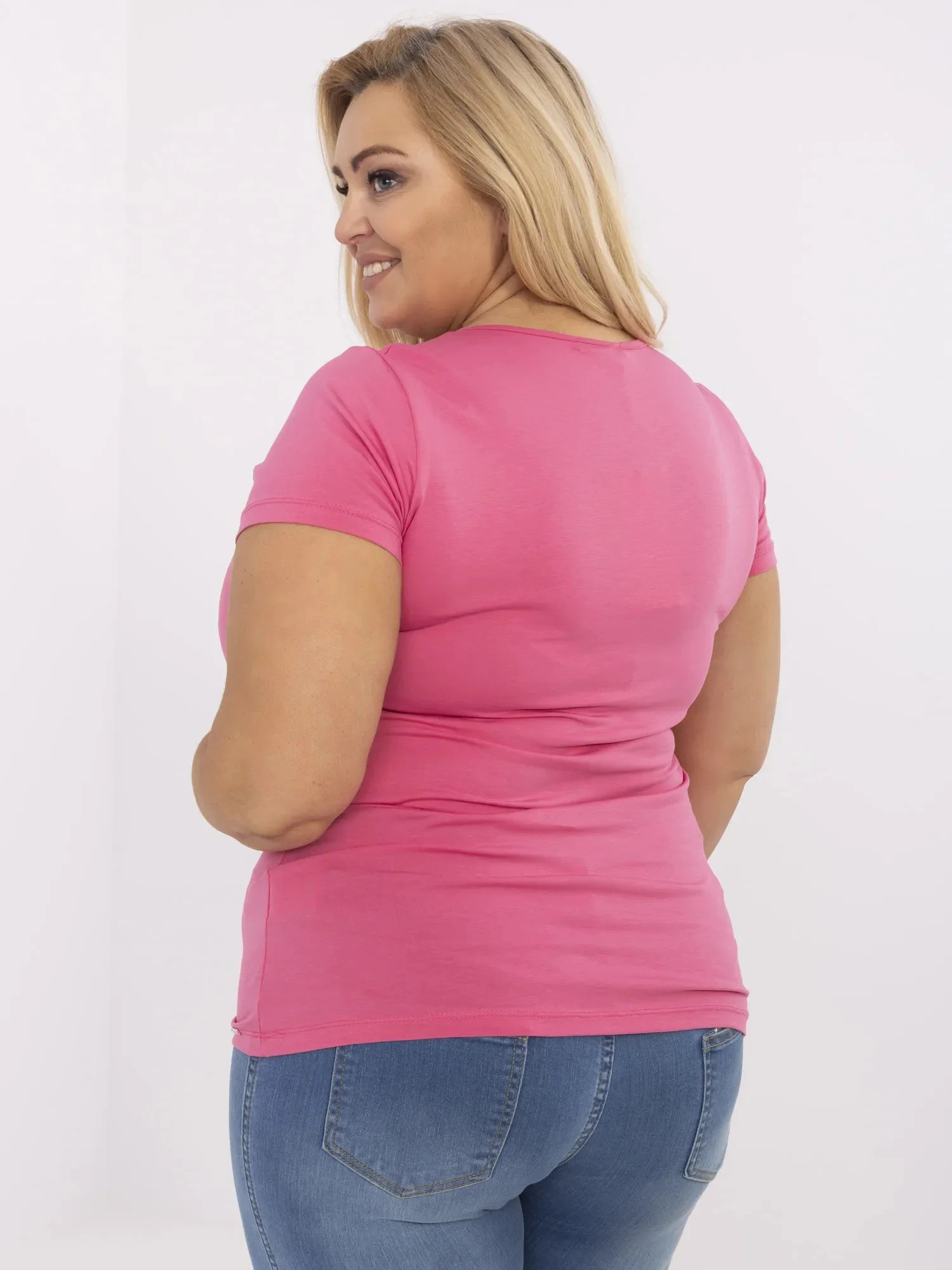 Modelka má na sobě velikost 2XL. Rozměry modelky: výška 167 cm, poprsí 118 cm, pas 90 cm, boky 118 cm.