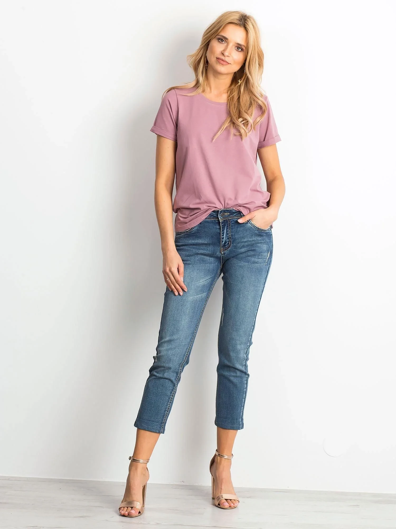 Dámské bavlněné základní tričko ve špinavě růžové barvě.