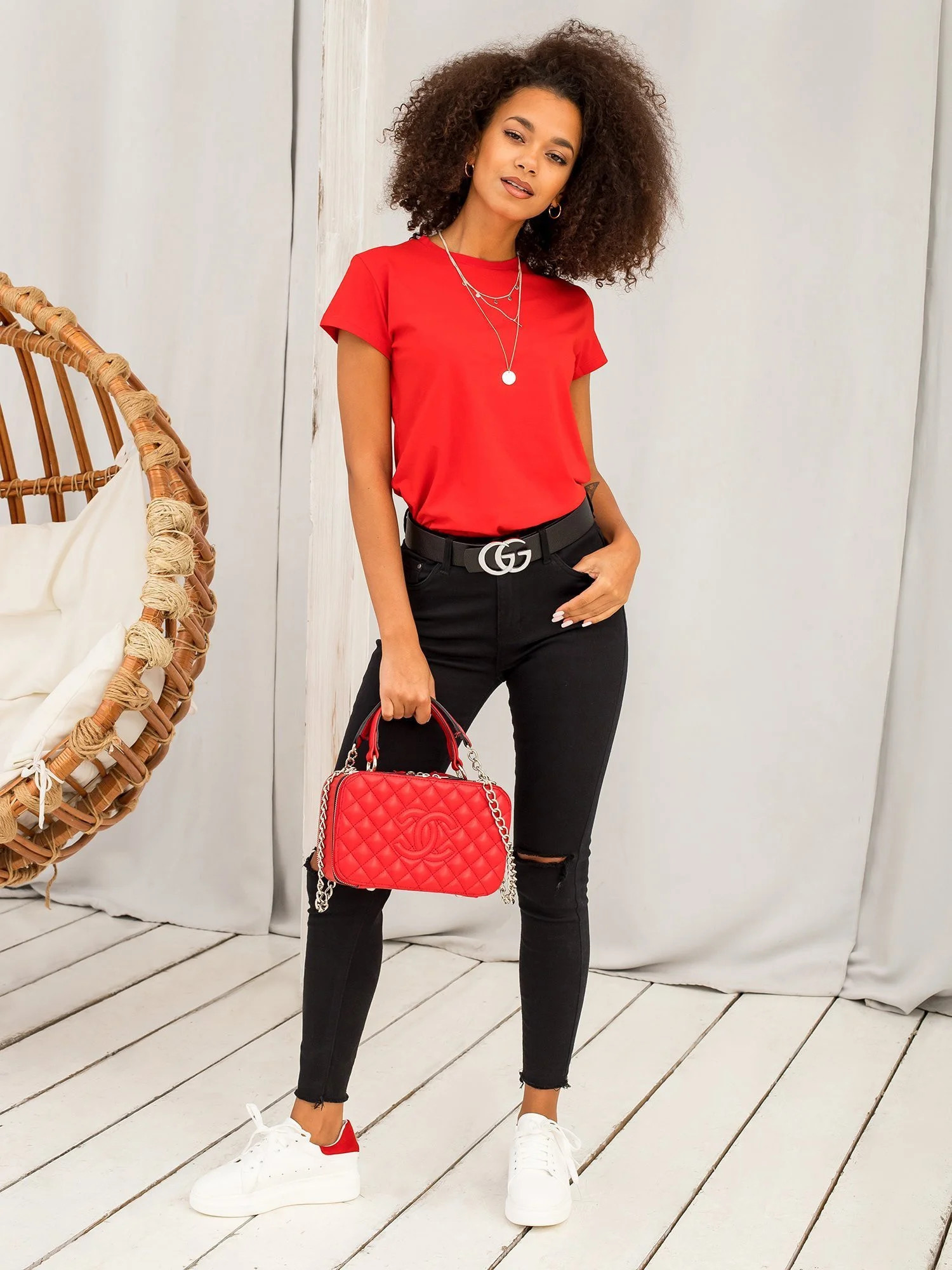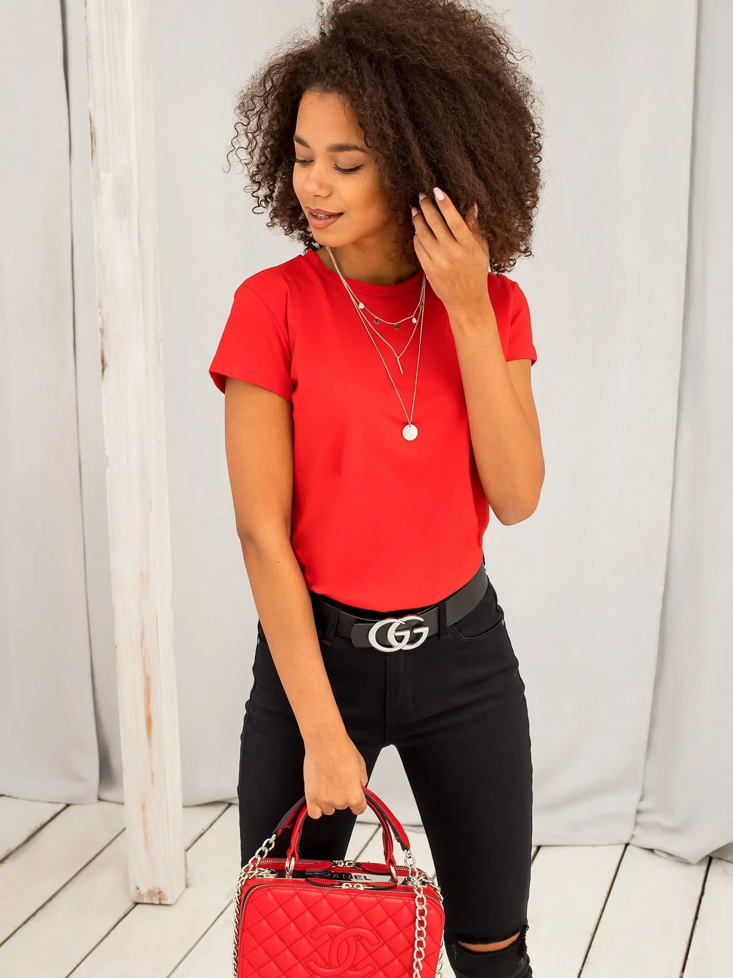 Modelka má na sobě velikost S. Rozměry modelky: výška 175 cm, poprsí 90 cm, pas 60 cm, boky 90 cm.