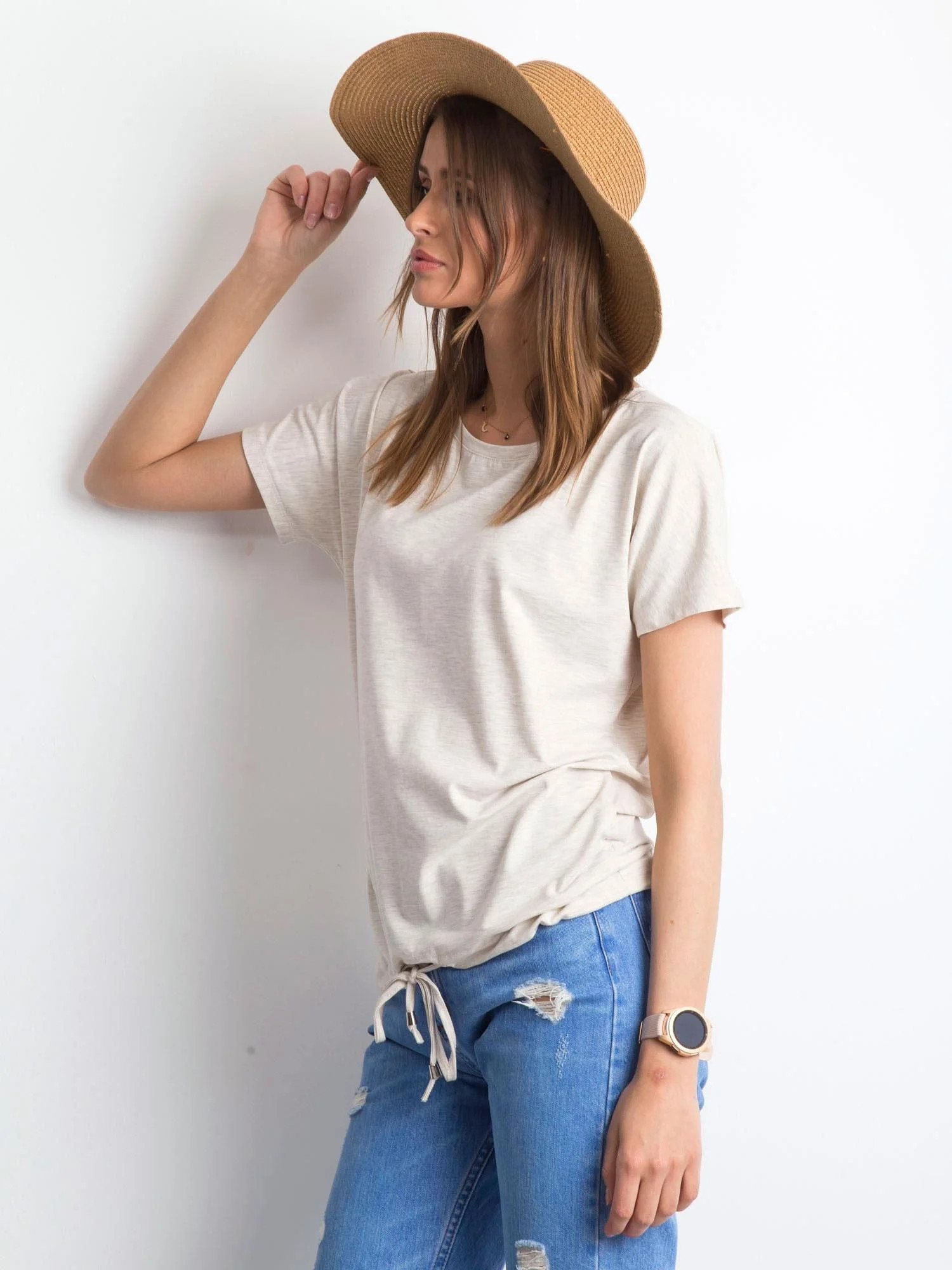 Dámské melanžové bavlněné tričko v béžové barvě.