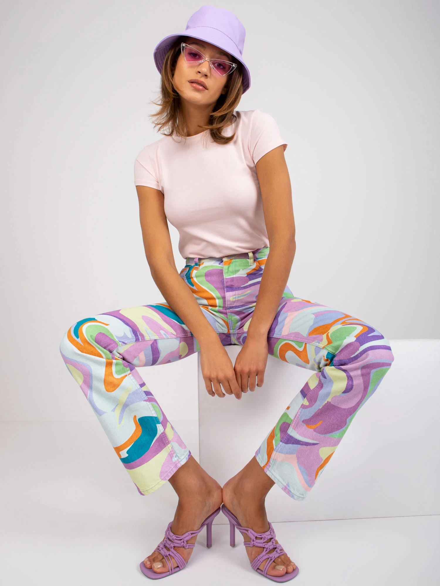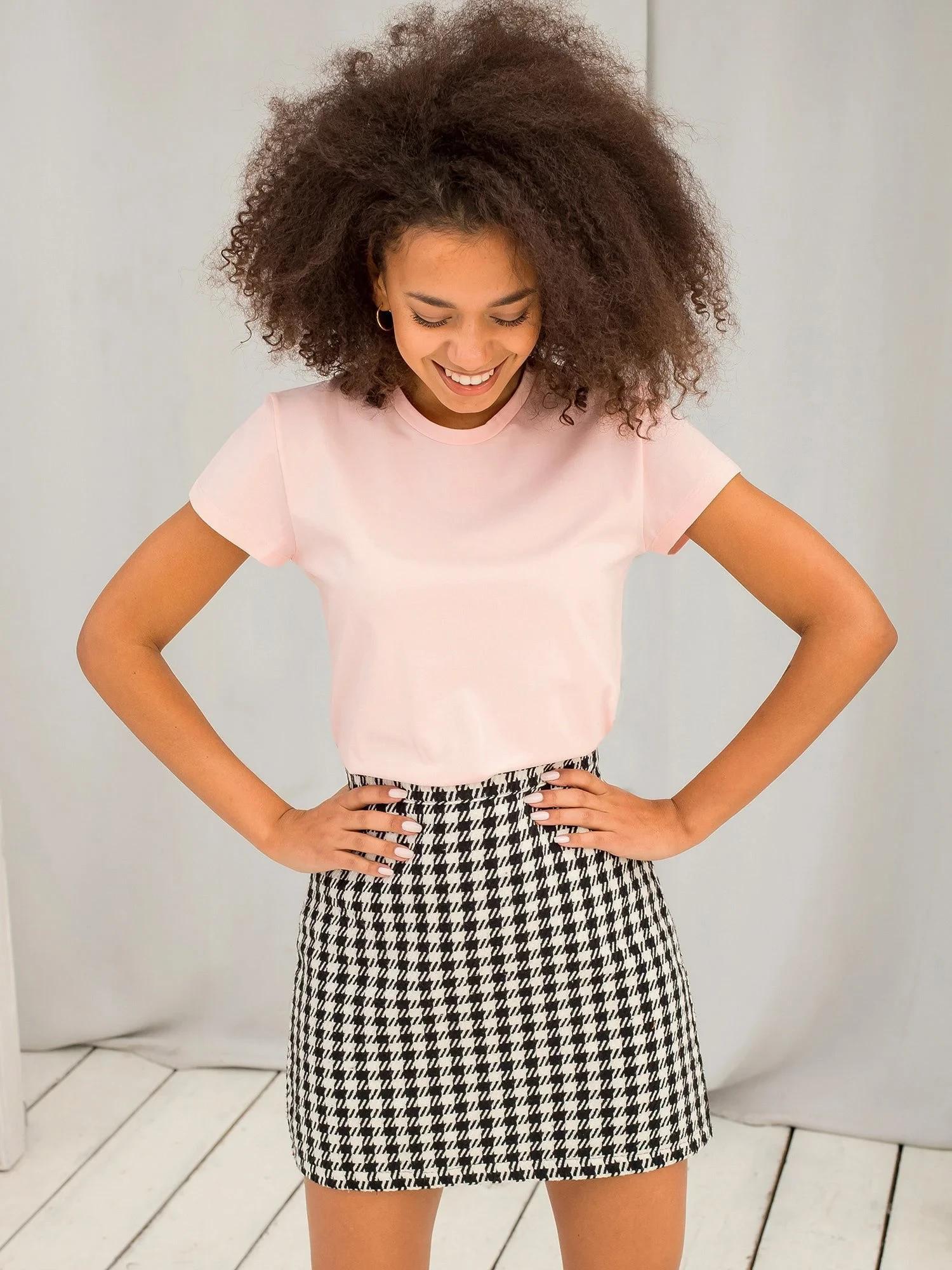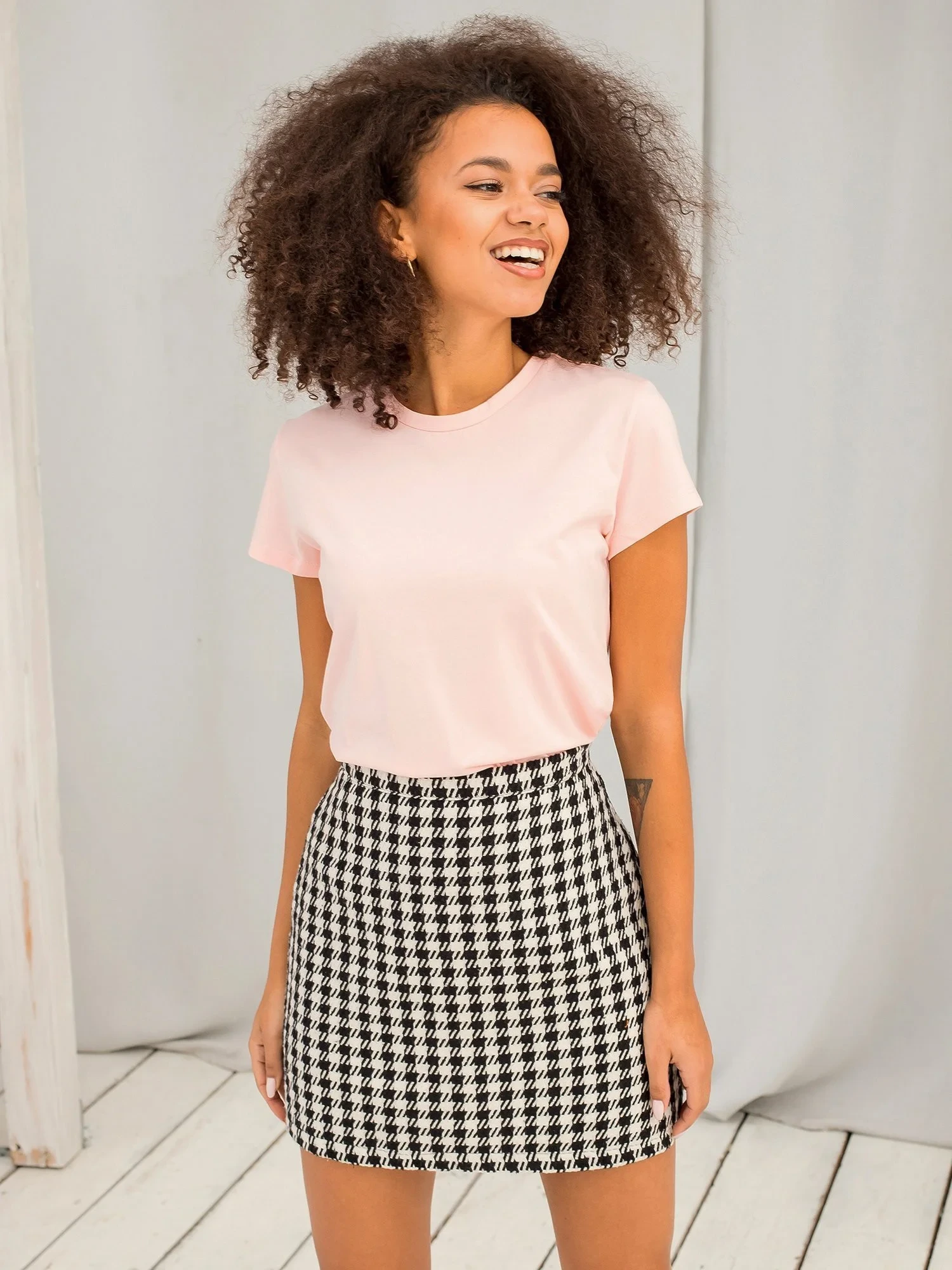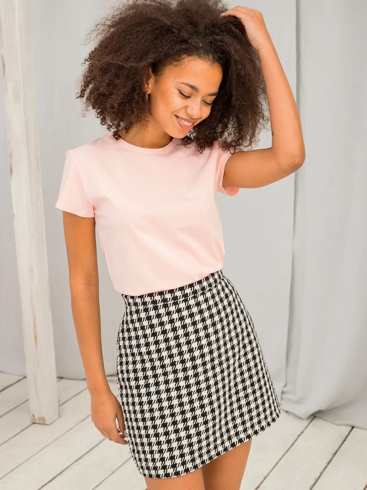 Modelka má na sobě velikost XS. Rozměry modelky: výška 180 cm, prsa 89 cm, pas 63 cm, boky 93 cm.