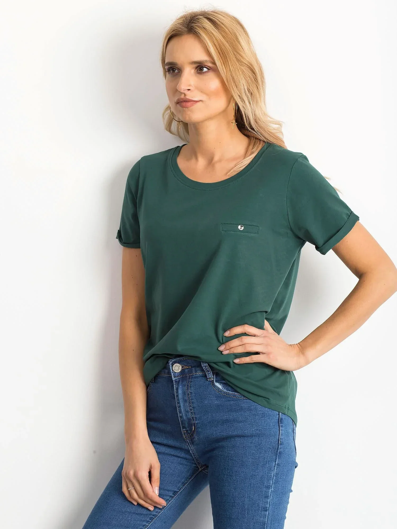 Dámské bavlněné tričko basic tmavě zelené.