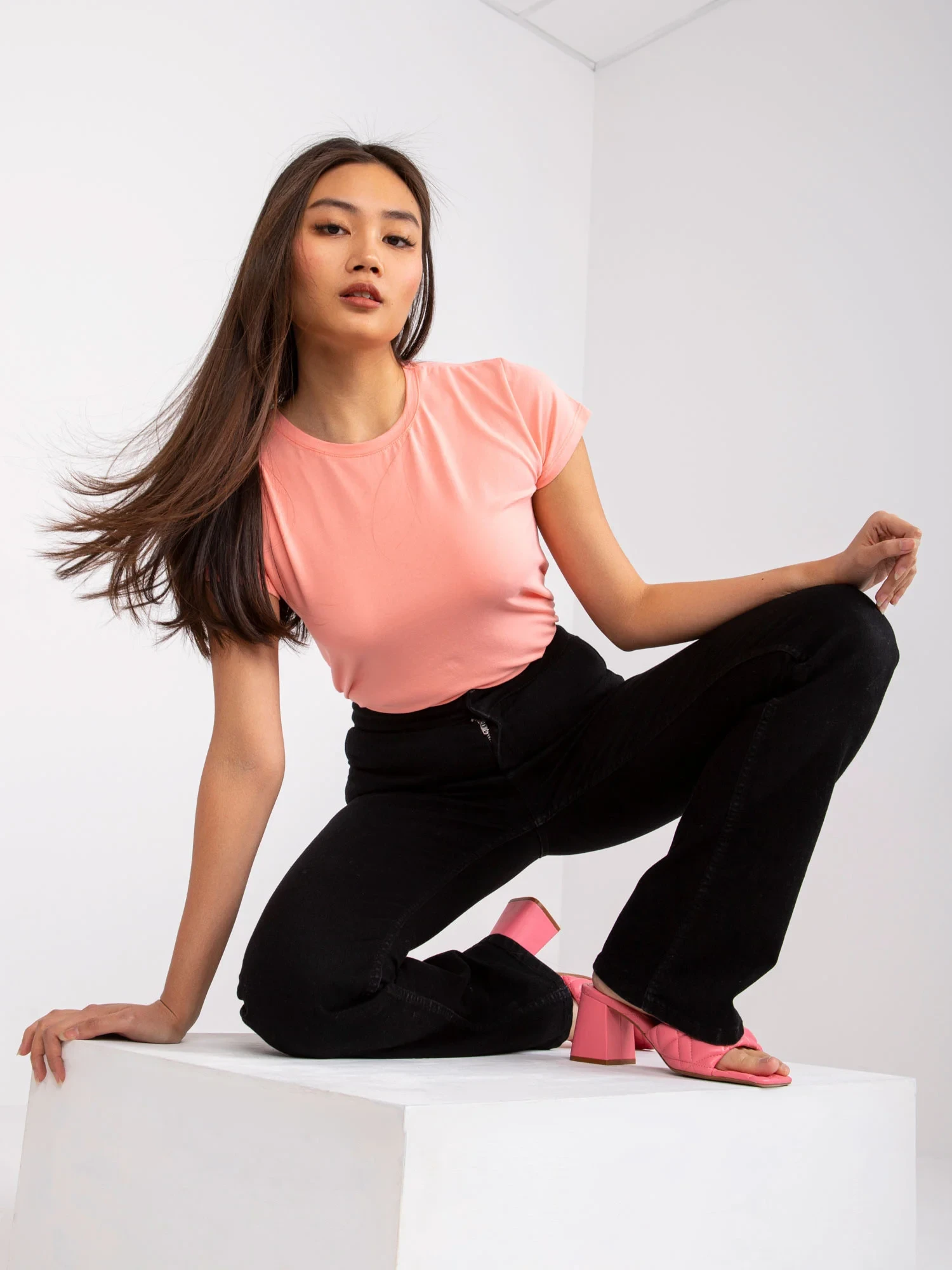 Modelka má na sobě velikost XS. Rozměry modelky: výška 165 cm, prsa 83 cm, pas 64 cm, boky 89 cm.