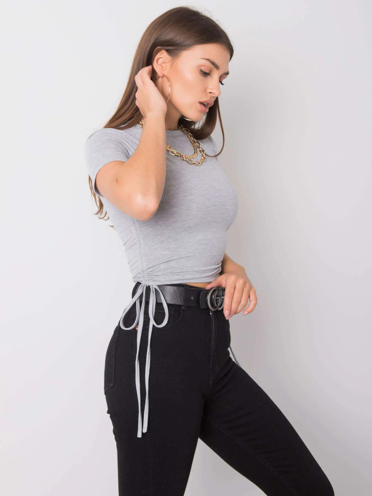 Šedé melanžové bavlněné dámské tričko.