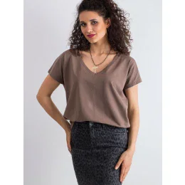Bavlněné tričko s výstřihem do V v kávové barvě.