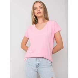 Tričko s výstřihem do V ve světle růžové barvě.