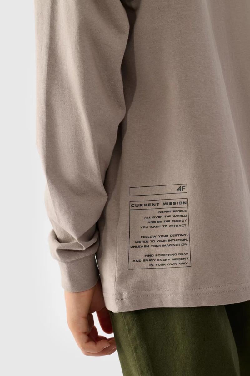 Tričko S Dlouhým Rukávem Pro Chlapce S Potiskem Regular 4F 4FJWAW24TLONM294-26S Šedé