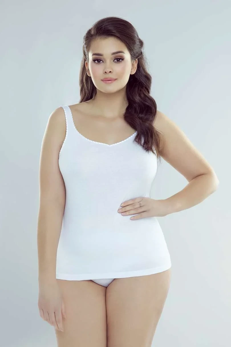 Dámské hladké tričko bez ramínek zakončené lesklým lemem.