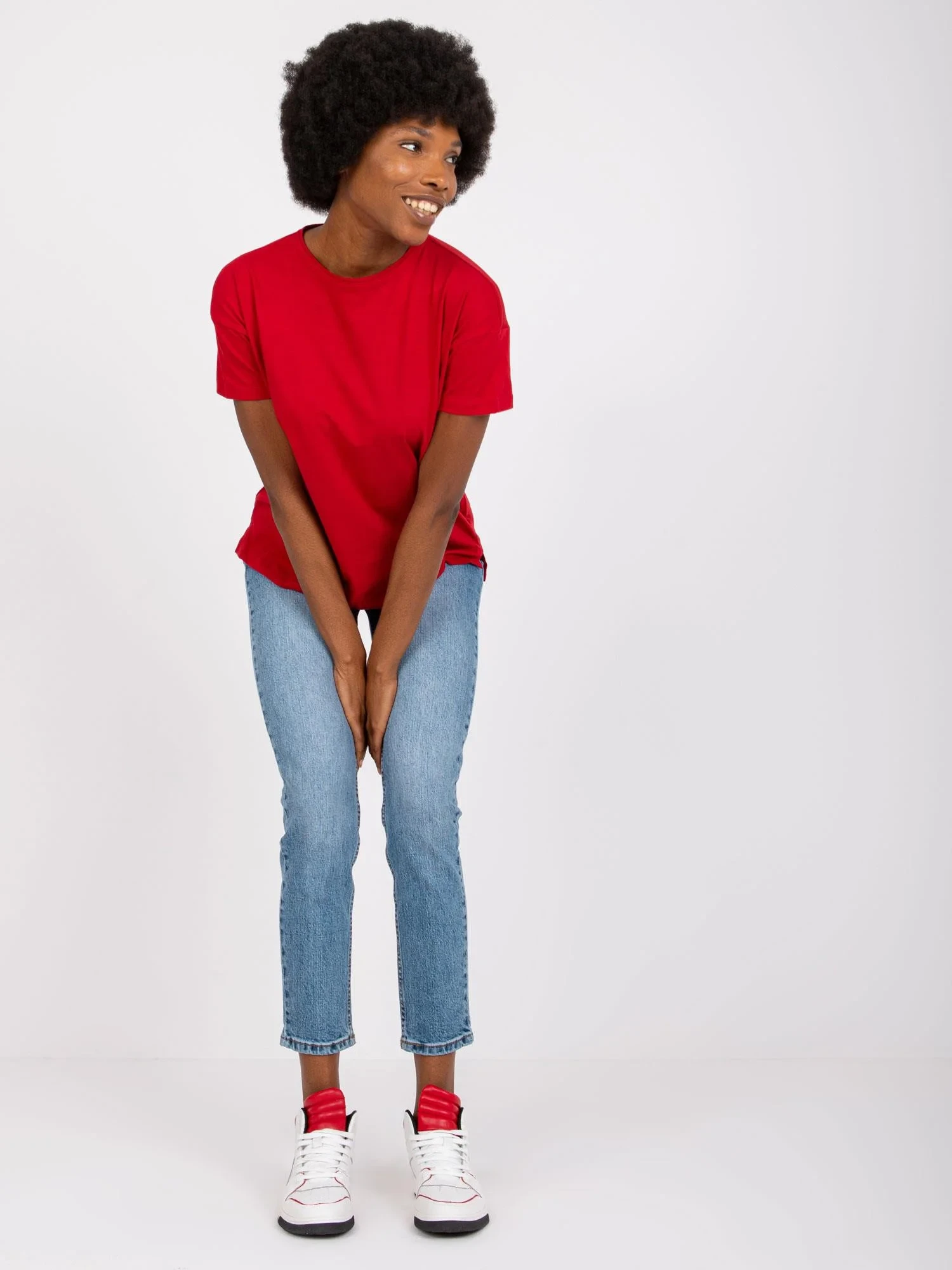 Modelka má na sobě velikost S. Rozměry modelky: výška 178 cm, prsa 82 cm, pas 63 cm, boky 93 cm.