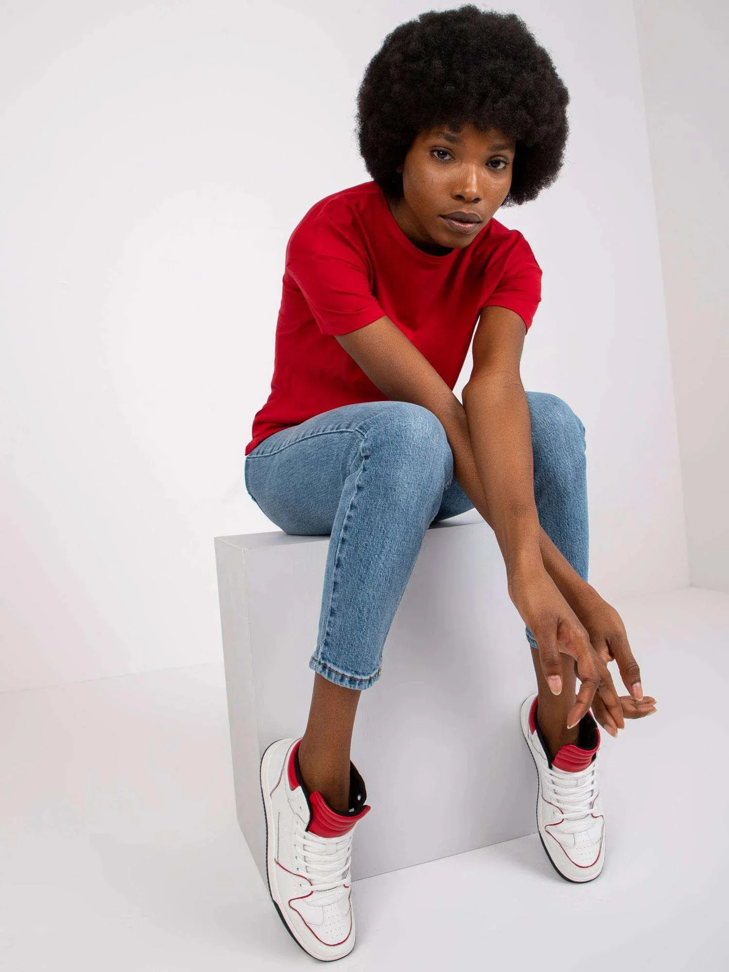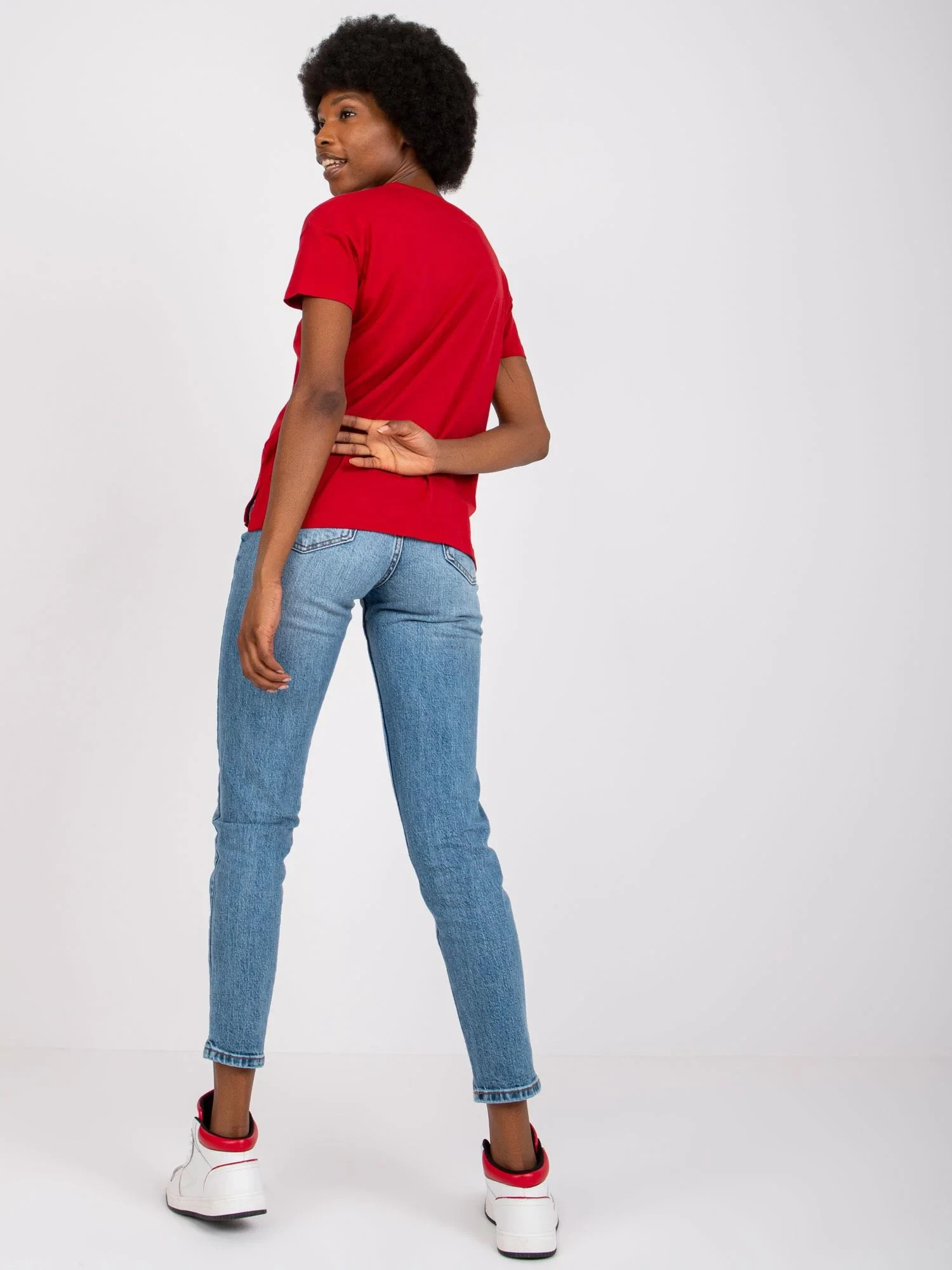 Modelka má na sobě velikost S. Rozměry modelky: výška 178 cm, prsa 82 cm, pas 63 cm, boky 93 cm.