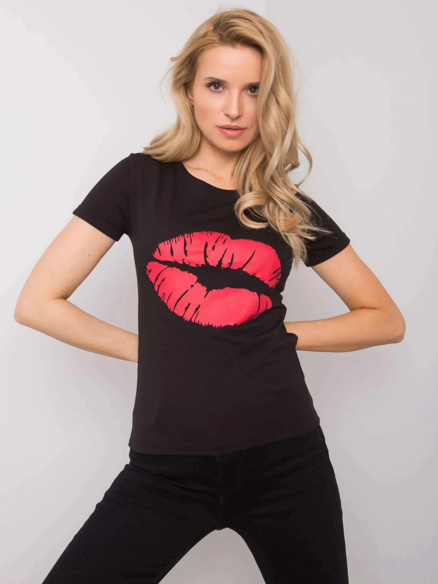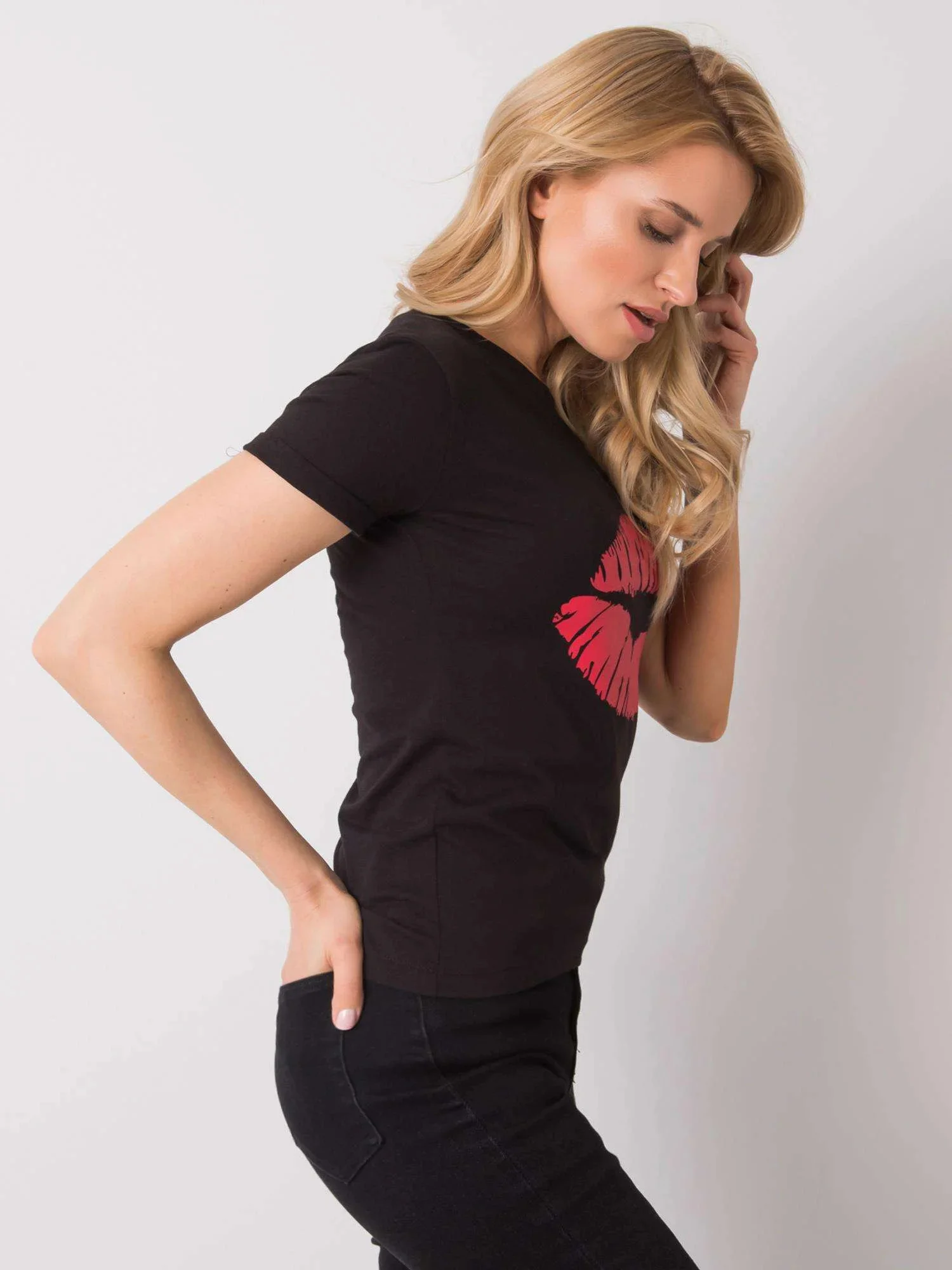 OCH BELLA Černé bavlněné tričko s potiskem.